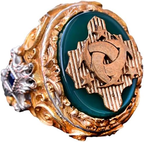 Jade Taşı Yüzük - 925 Ayar Gümüş Mühür Yüzük - El Yapımı Erkek Altın Kaplama Yüzük (Aile Arması)
