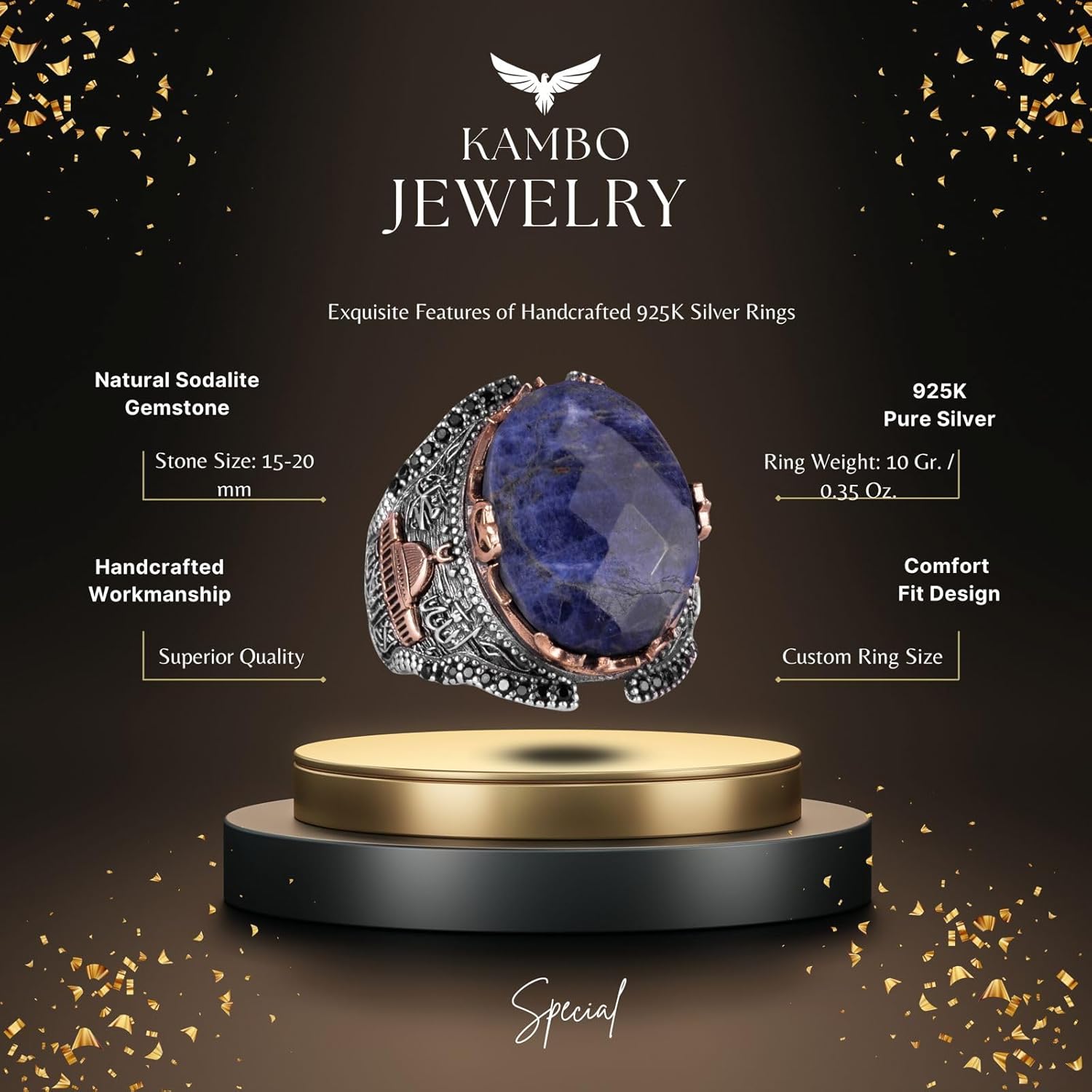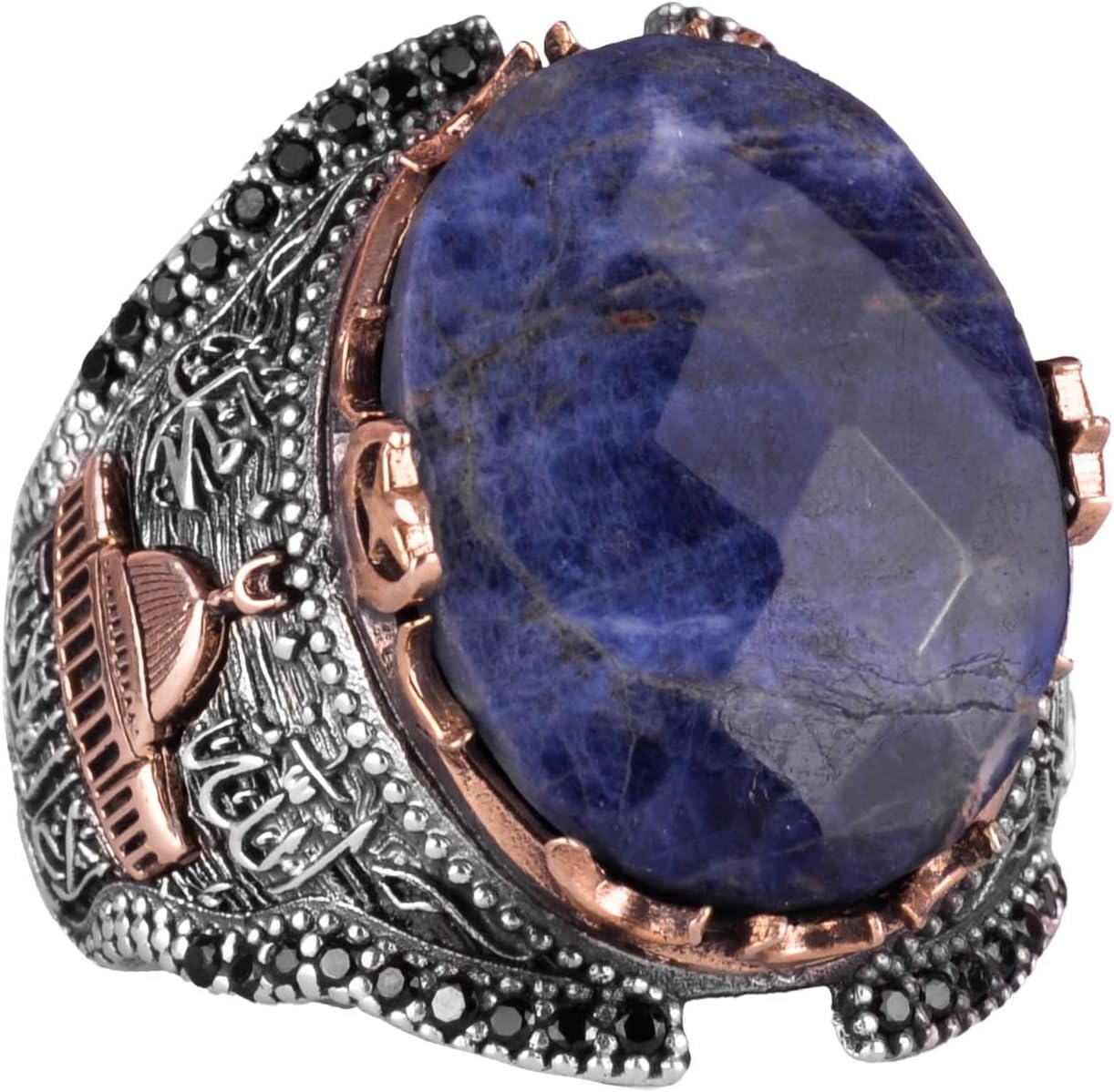 Kaaba Gümüş Yüzük, Doğal Sodalit Taşlı Yüzük Erkekler İçin, 925 Ayar Gümüş Yüzük