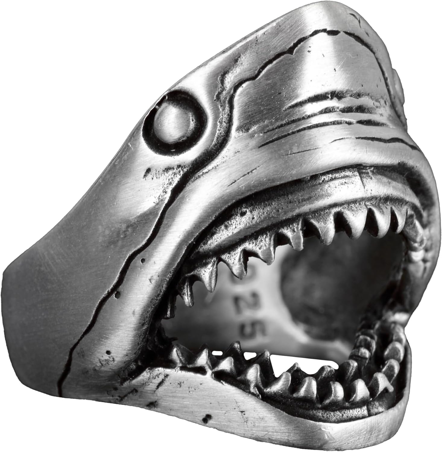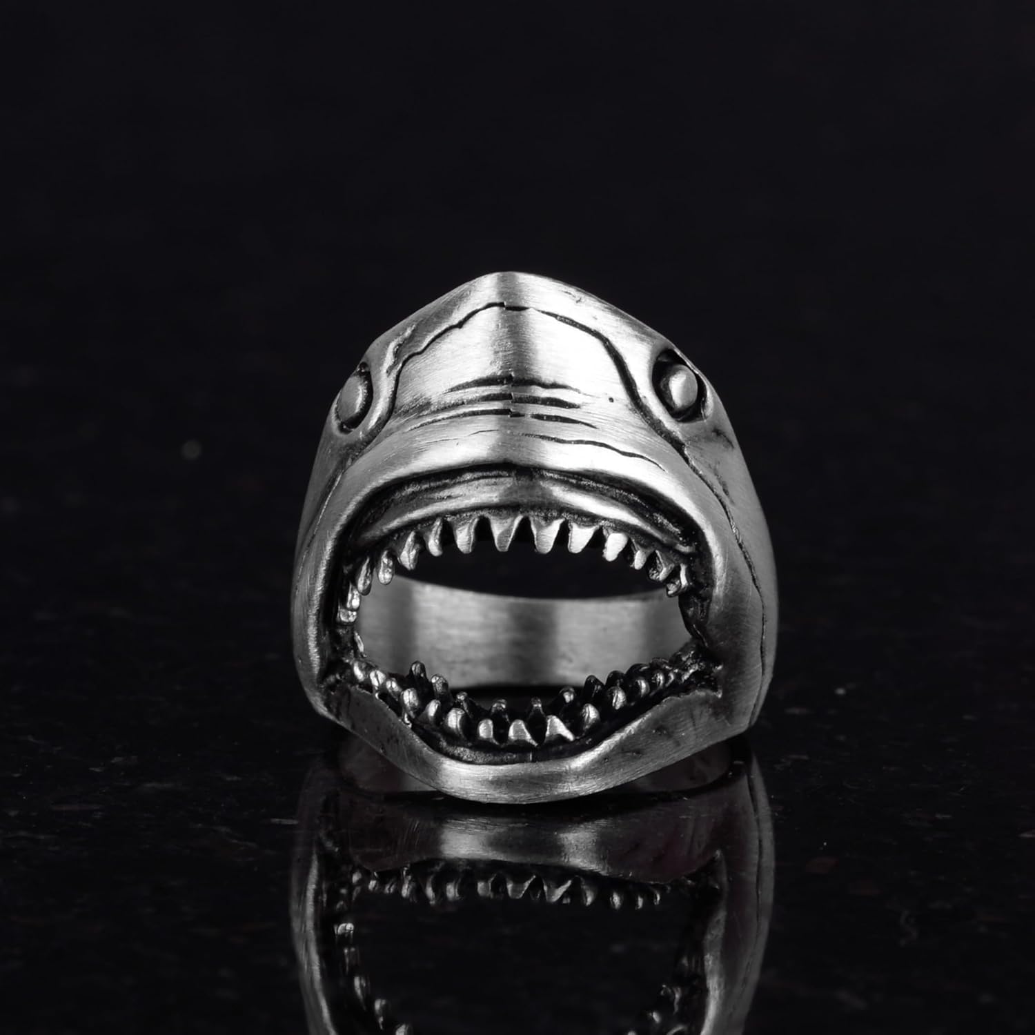 Köpek Balığı Yüzüğü, 925 Ayar Gümüş Erkek Yüzüğü, Hayvan Tasarımı