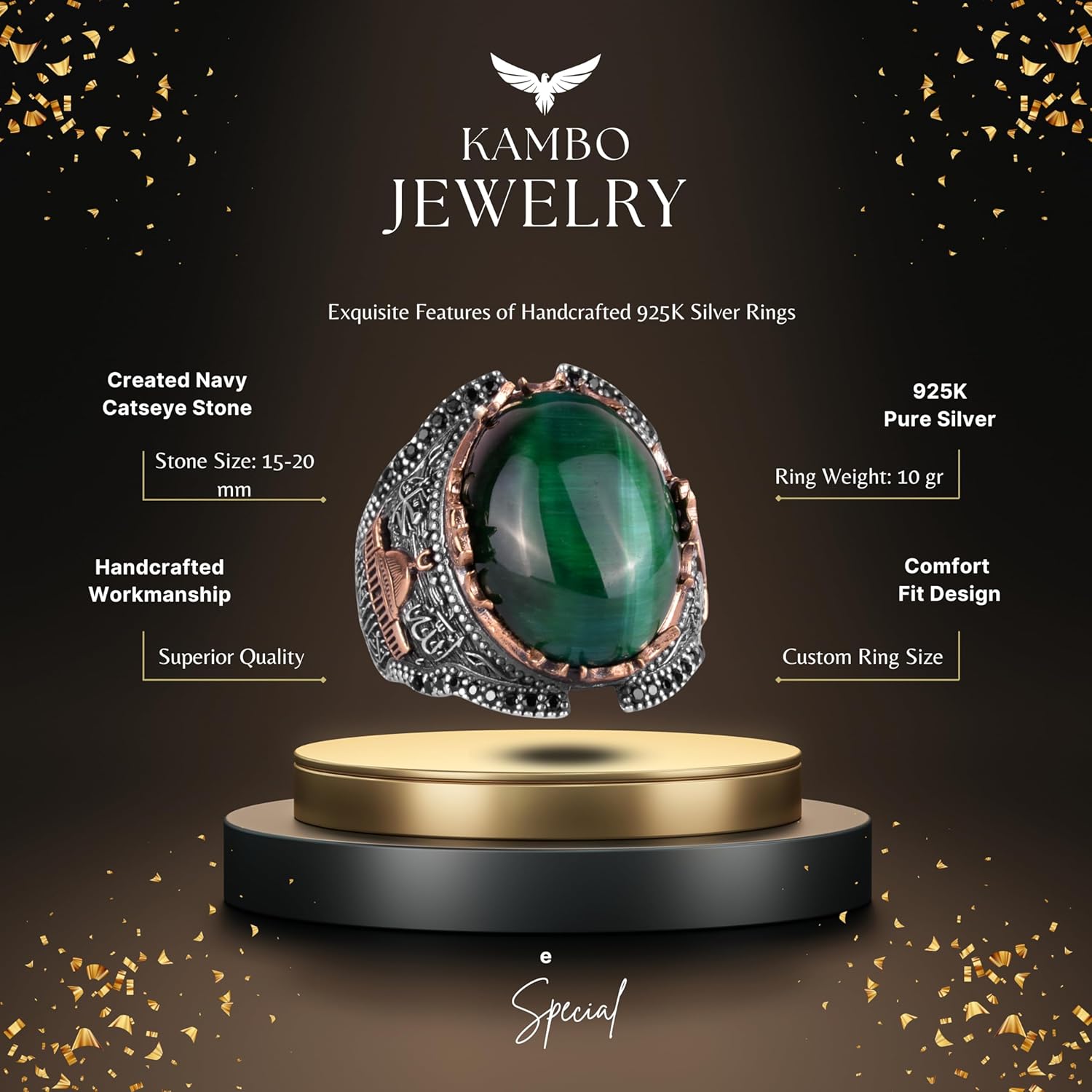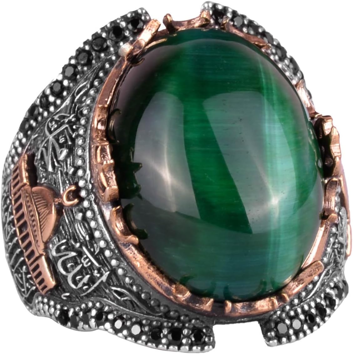 Koyu Yeşil Göztaşı Oluşturulmuş Taş Yüzük, 925 Ayar Gümüş Oluşturulmuş Taş Yüzükler - Çeşitli Koleksiyon