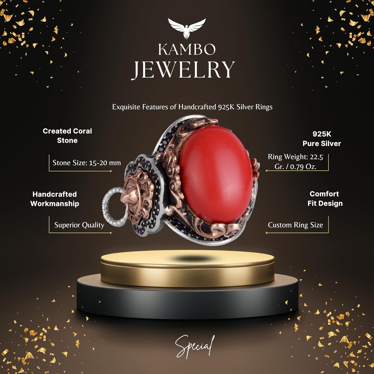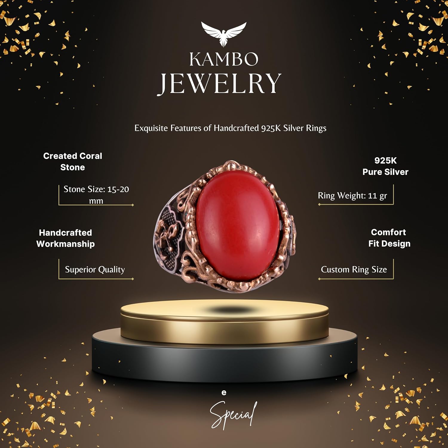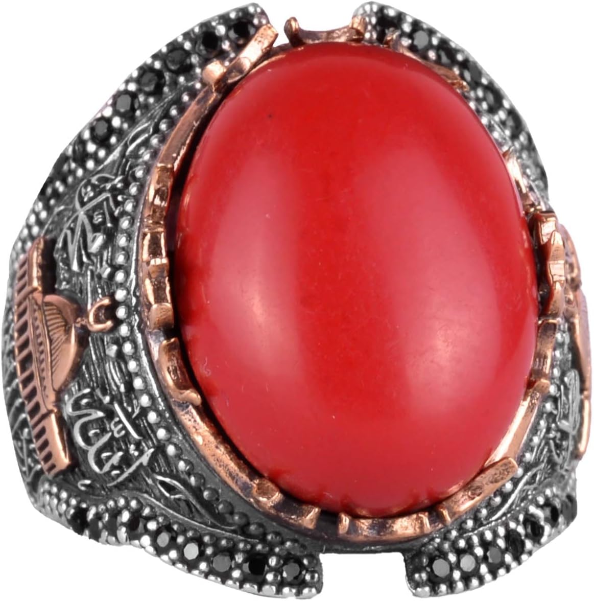 Kırmızı Mercan Yapay Taş Yüzük, İslami Camii Gümüş Yüzük, 925 Ayar Gümüş Yapay Taş Yüzükler - Çeşitli & Farklı Koleksiyon