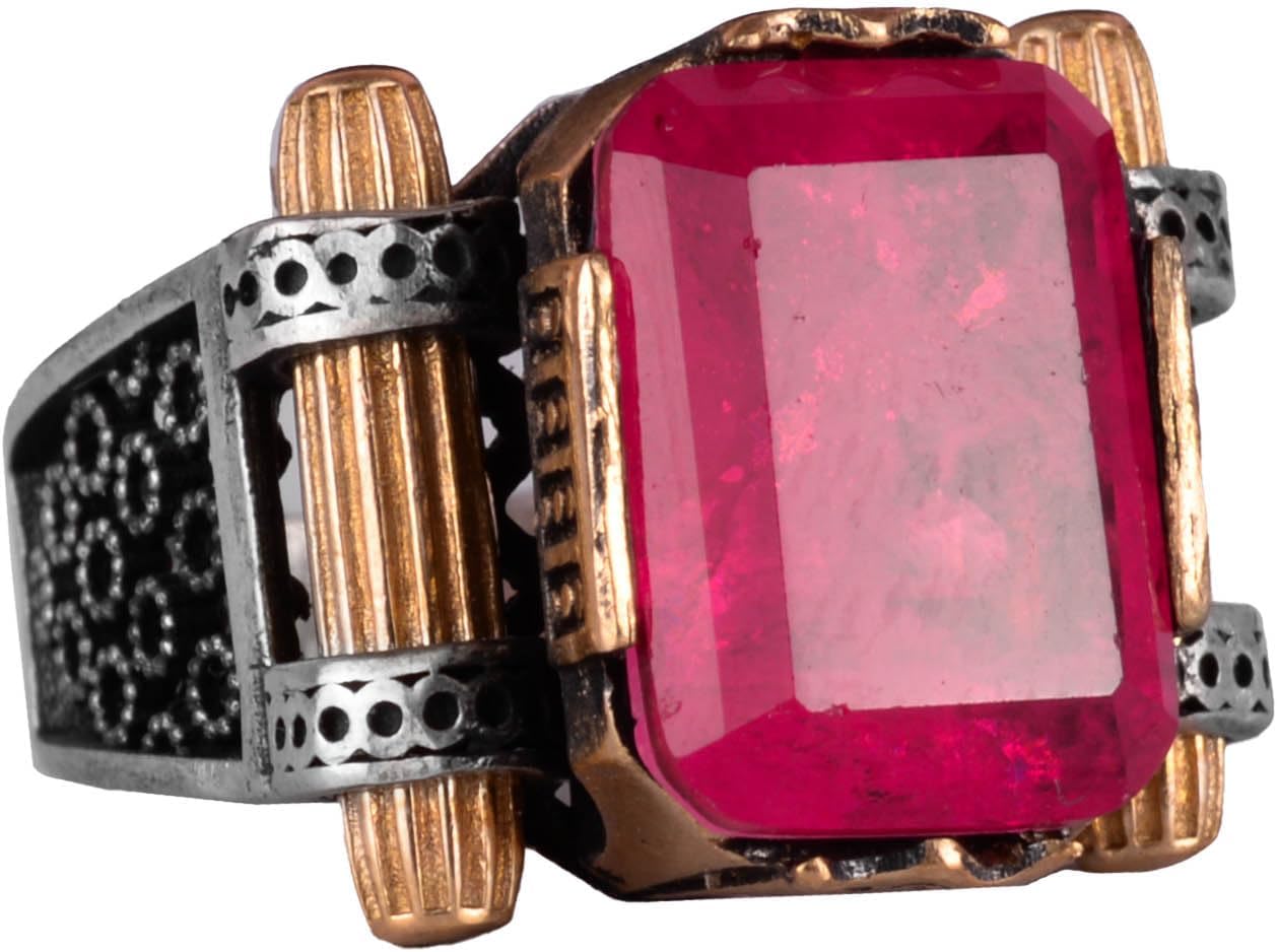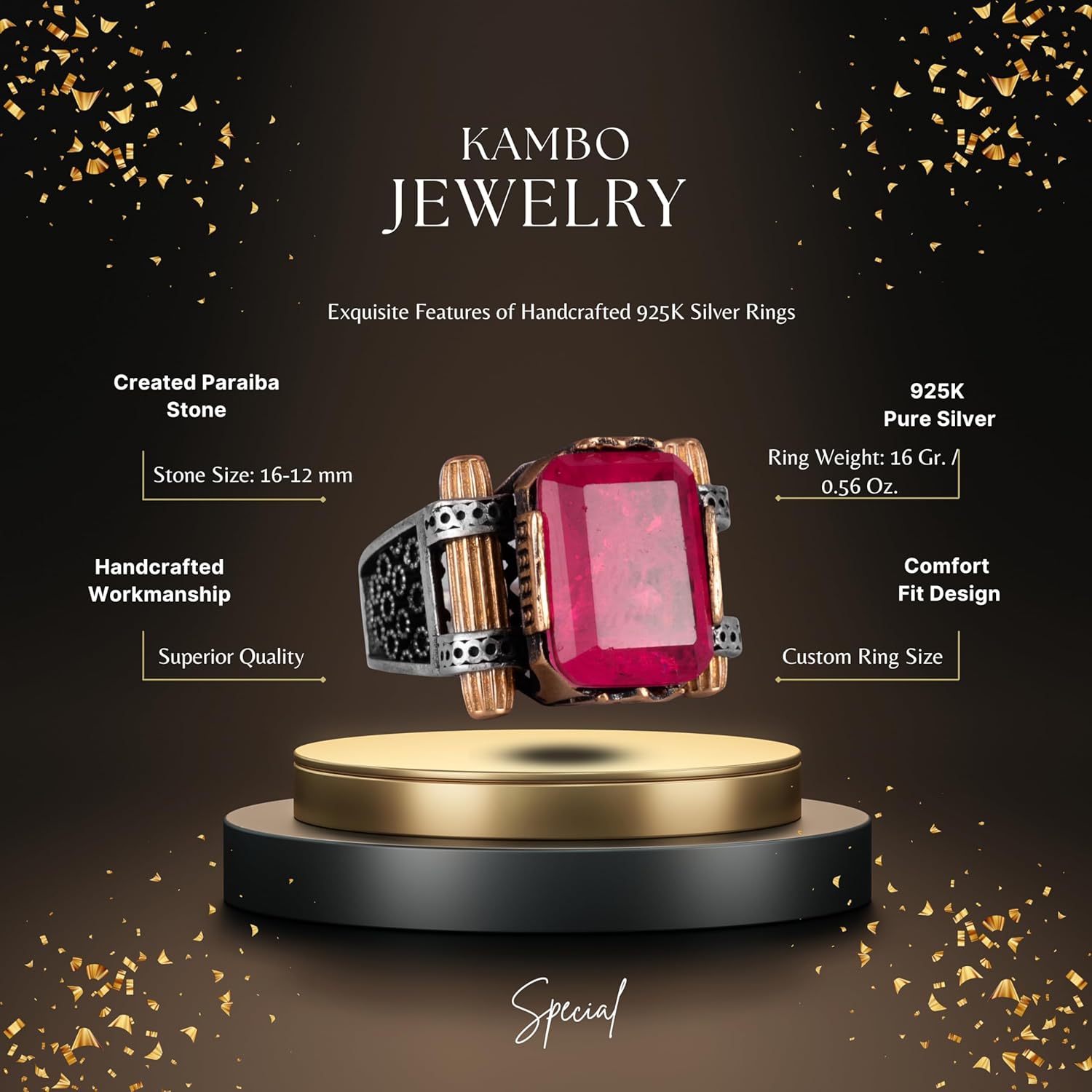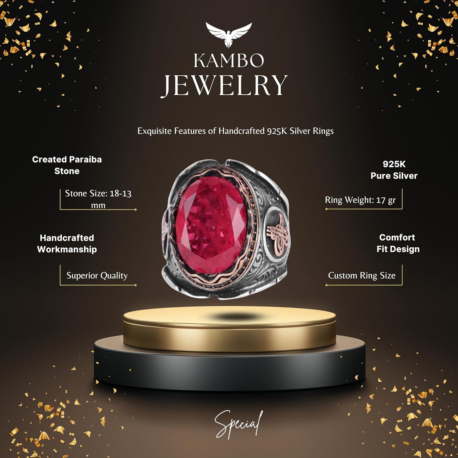 Kırmızı Paraiba Taşı Erkek Yüzüğü - 925 Ayar Gümüş El Yapımı Yüzük - Erkek Yüzüğü