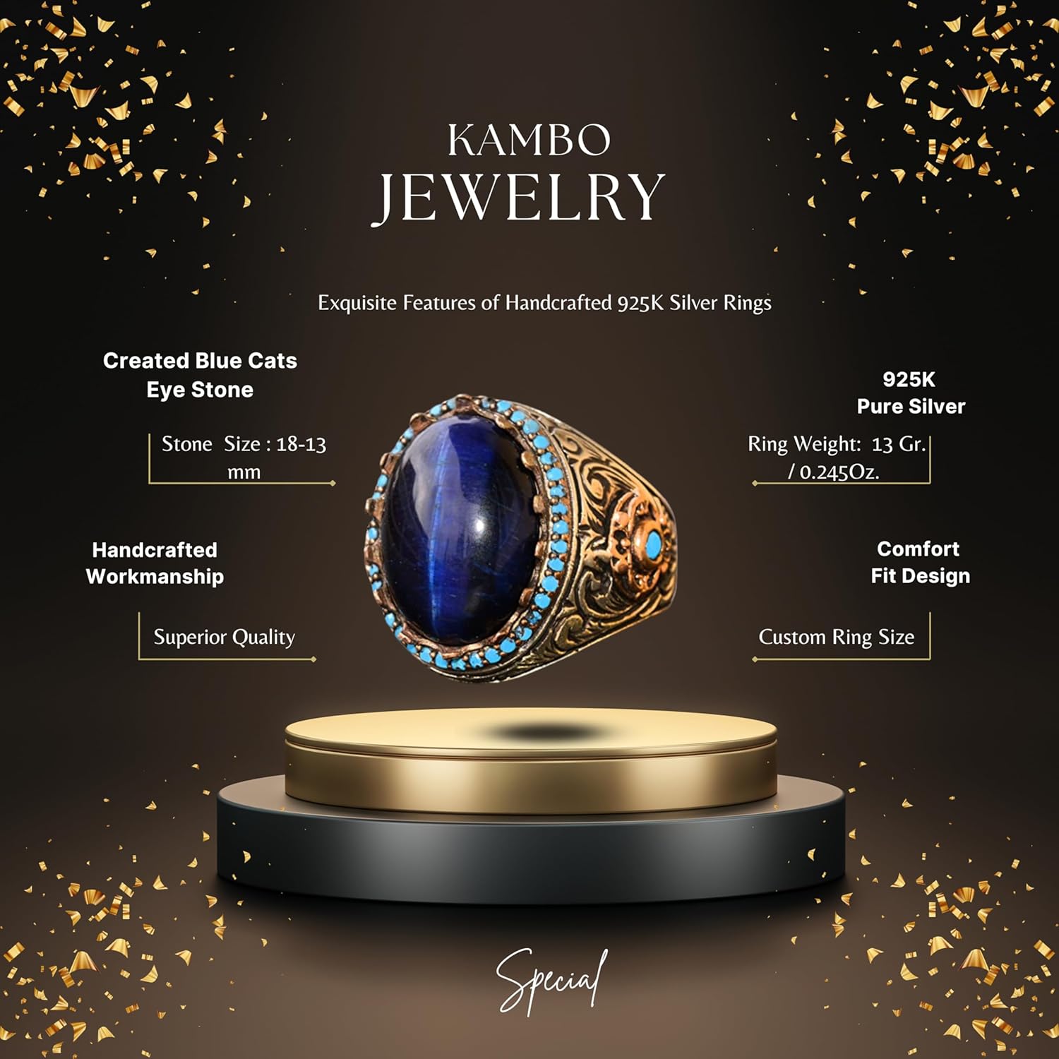 Kral Yüzük - Yapay Mavi Kaplan Göz Taşı, 925 Ayar Gümüş Unisex Yüzük