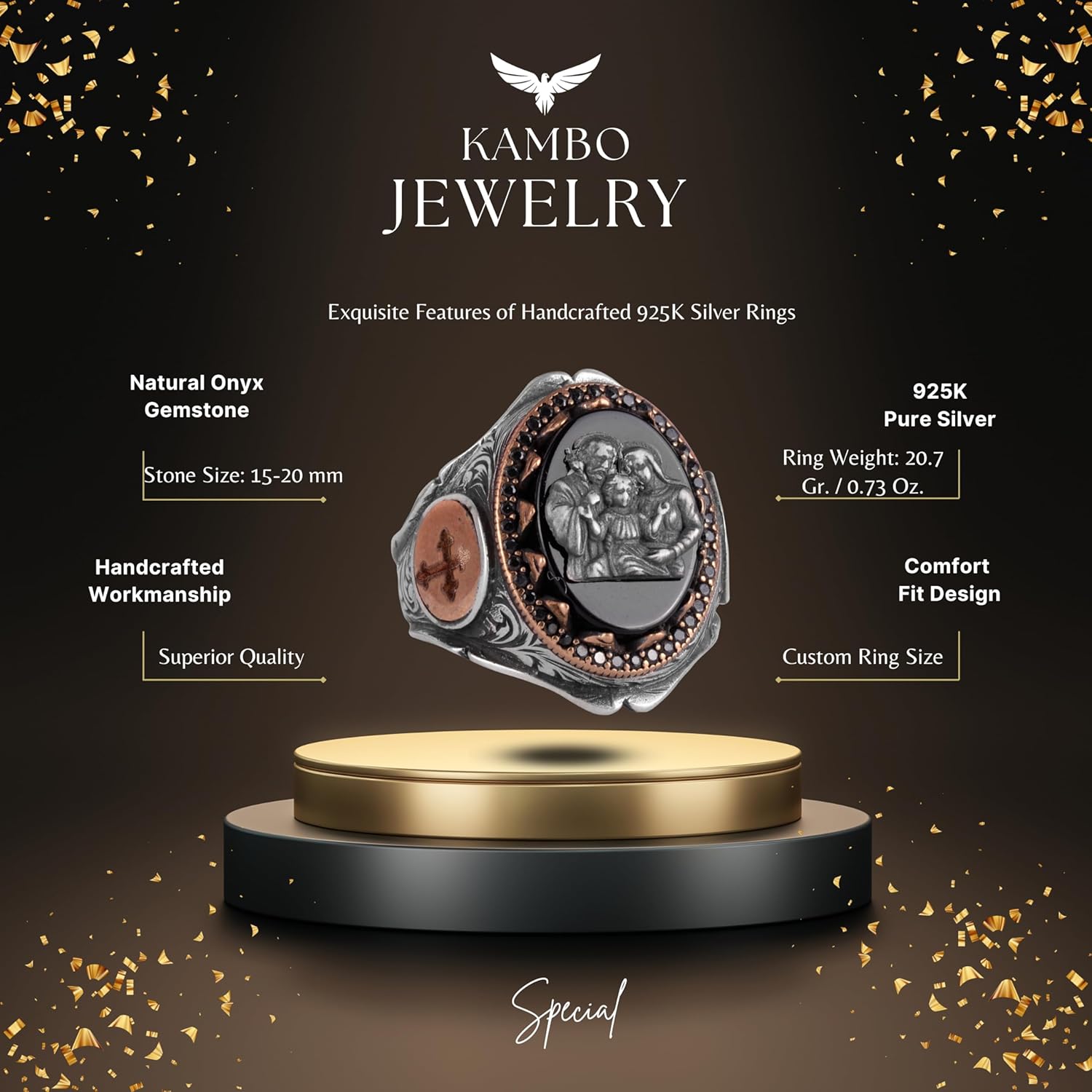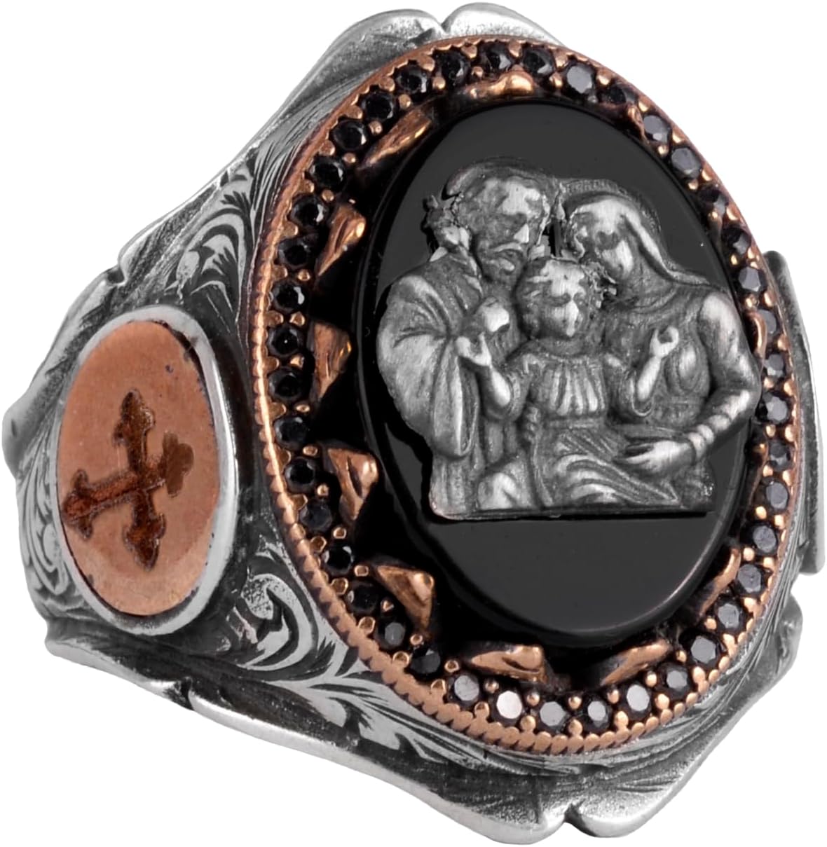 Kutsal Aile Gümüş Yüzük, İsa Meryem Yusuf, Erkekler için Haç Desenli Bant, 925 Ayar Gümüş Yüzük