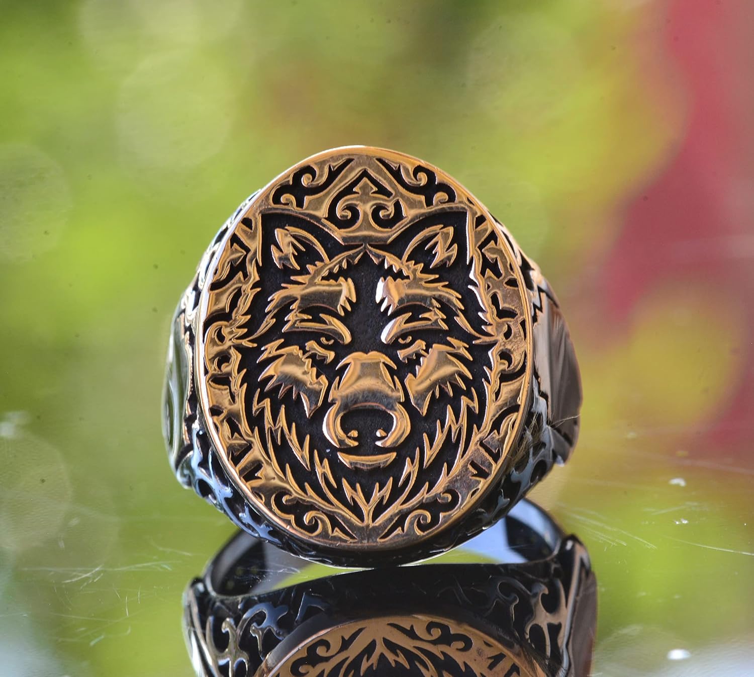 Kurt Gümüş Erkek Yüzük, Yaban Hayatı Yüzüğü, Hayvan Gümüş Yüzük, 925 Ayar Gümüş Yüzük