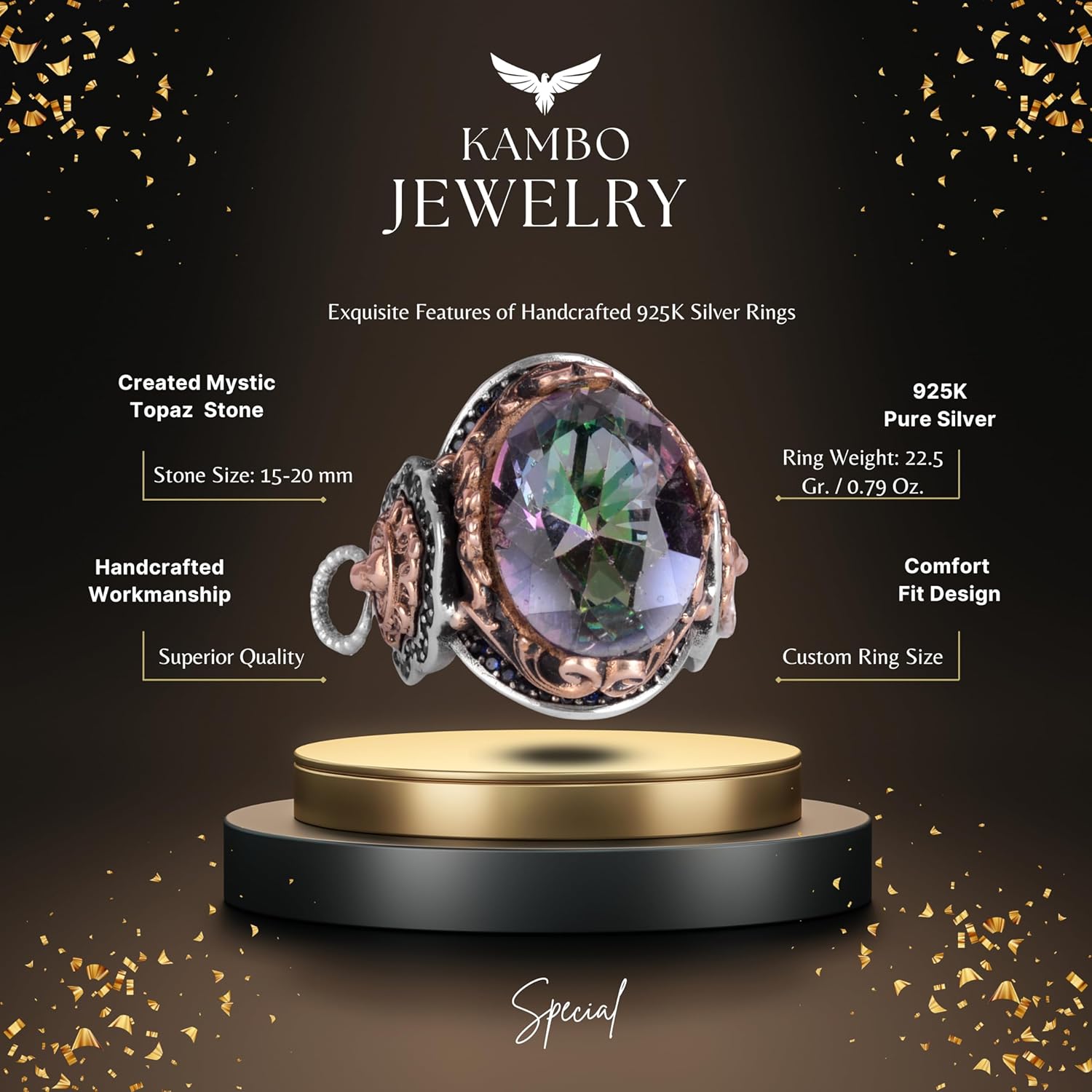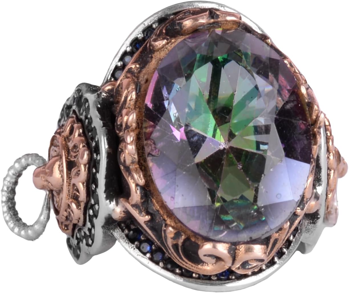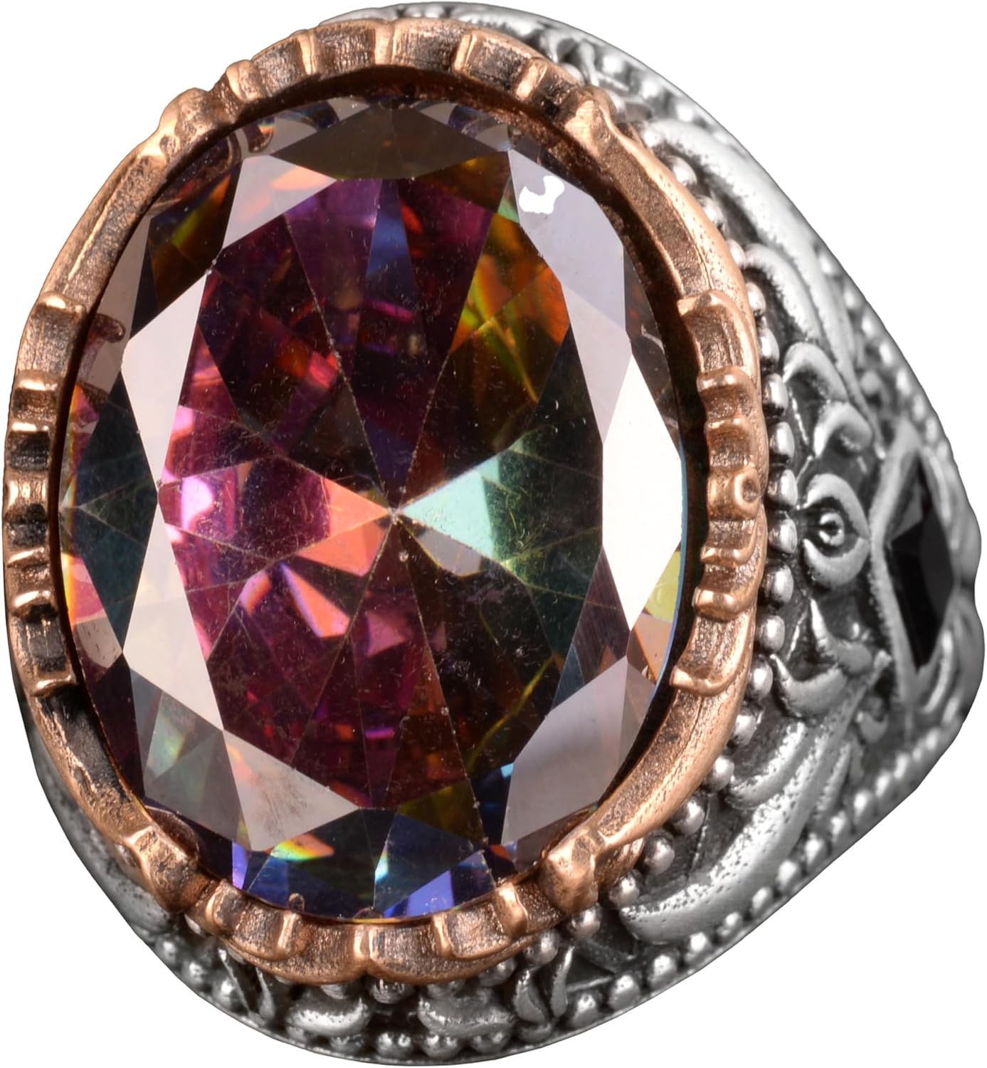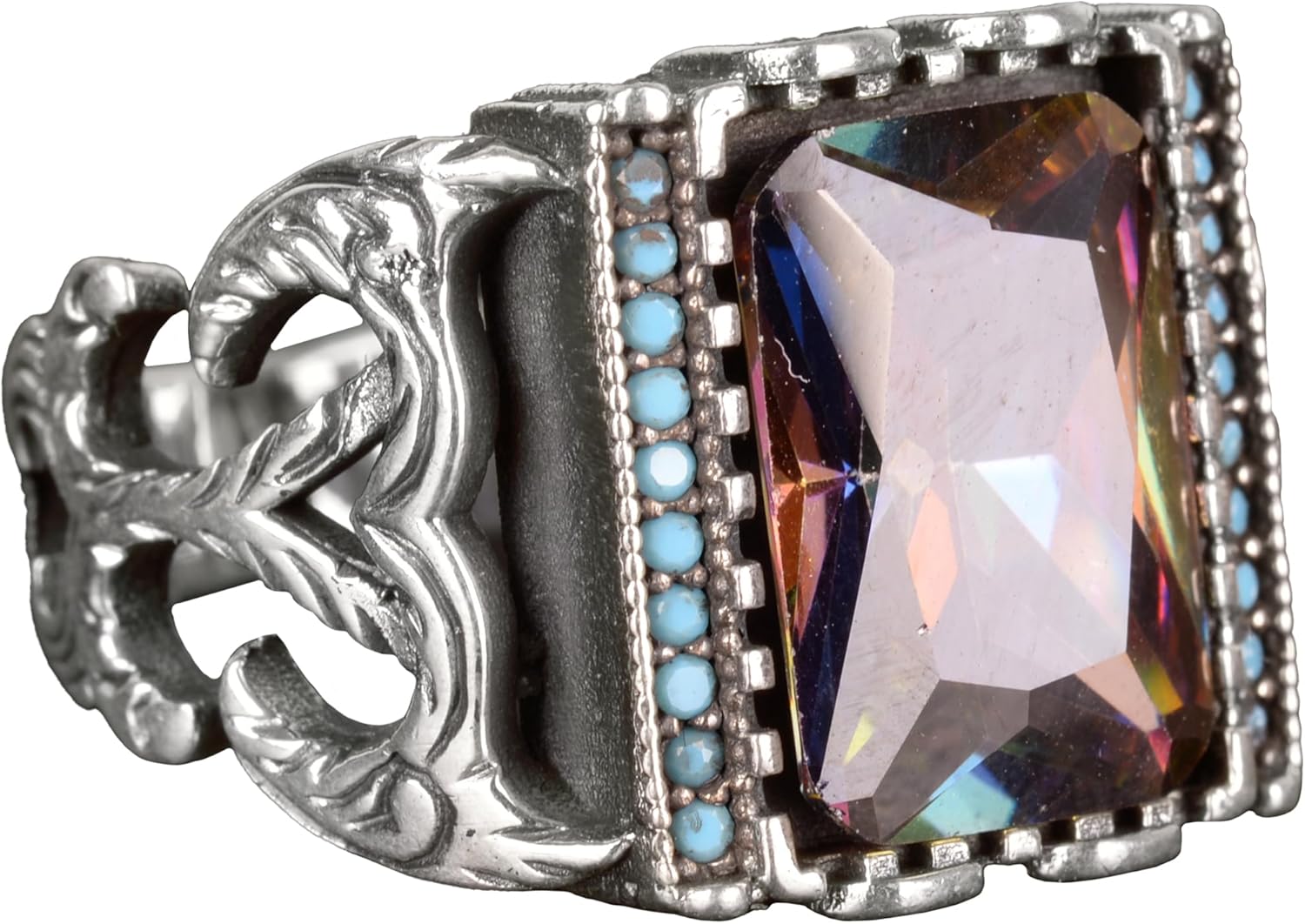 Mistik Topaz Yapay Taş, 925 Ayar Gümüş Erkek Yüzük, El Yapımı Erkek Yüzüğü