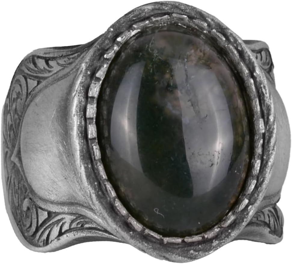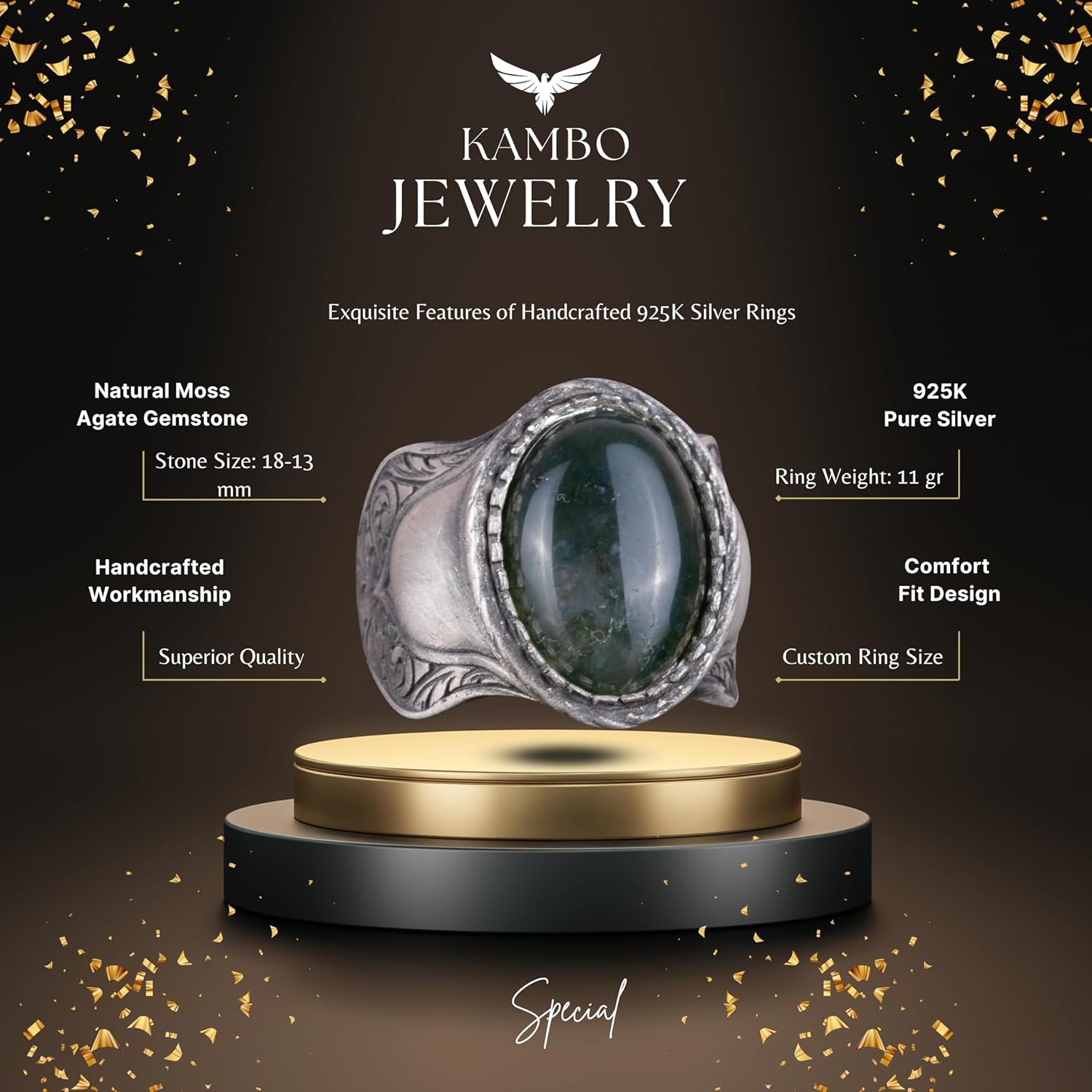 Moss Agat Doğal Taş Yüzük, 925 Ayar Gümüş Yüzük