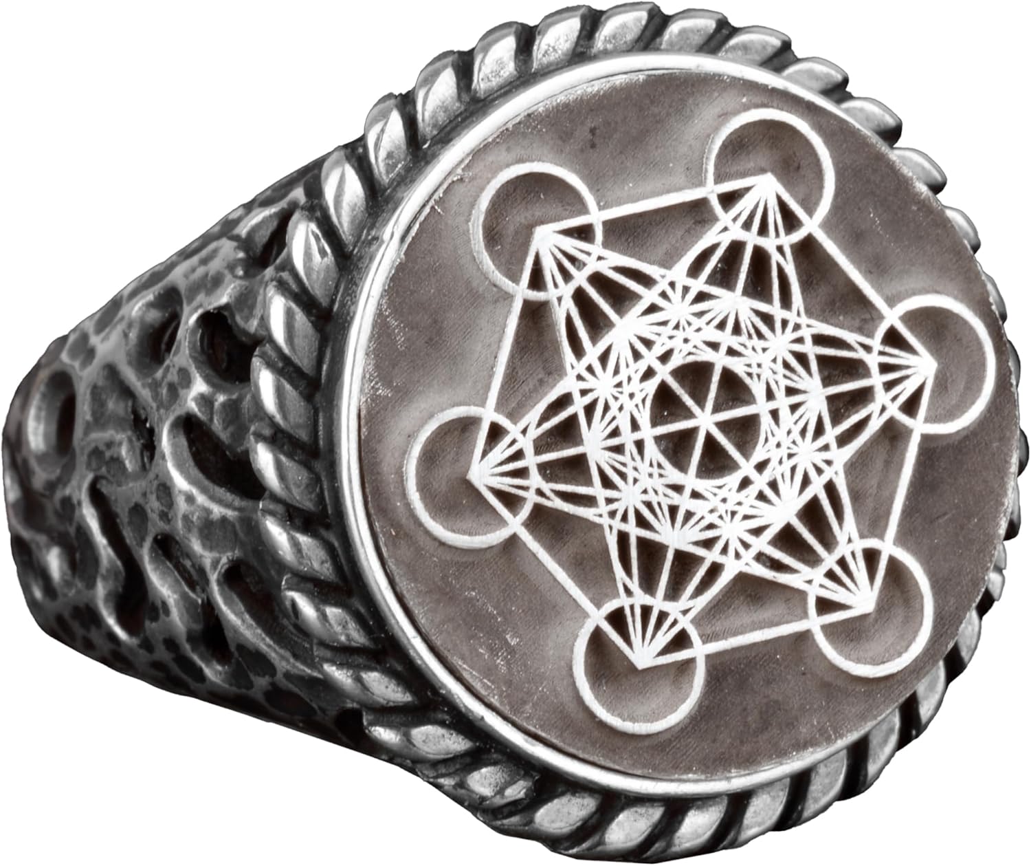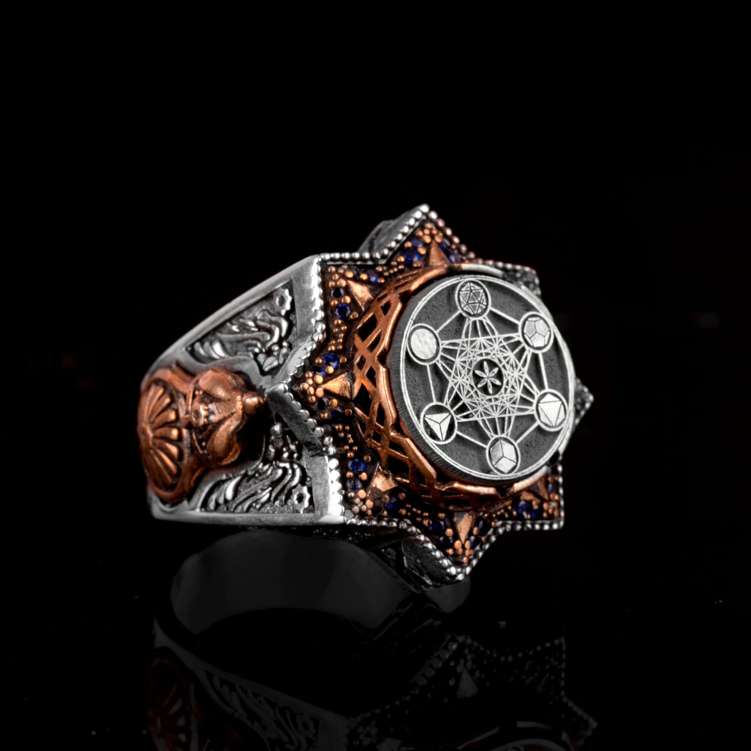 Metatron Yüzüğü, Damgalı Yüzük, Helatron Küp, 925 Ayar Gümüş Yüzük Erkekler İçin