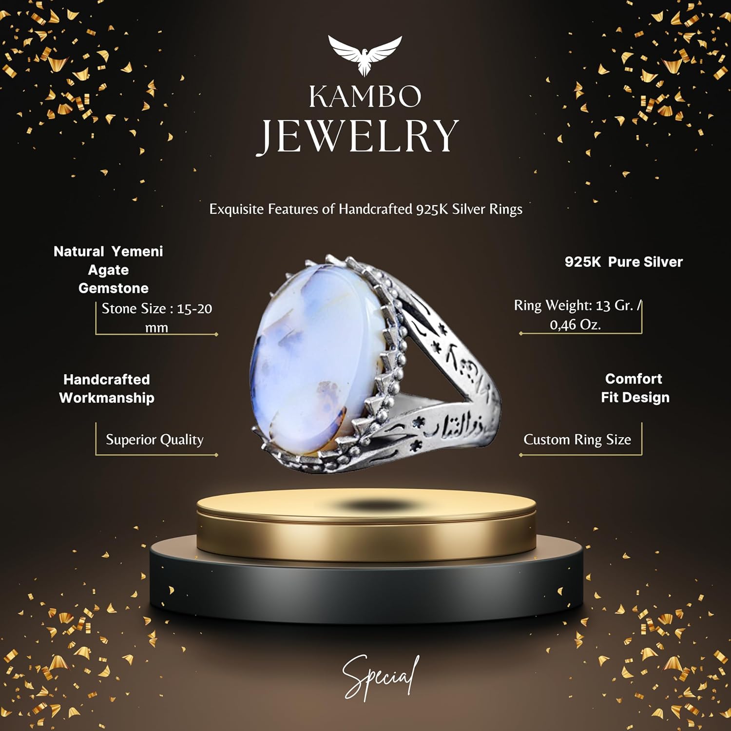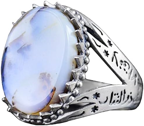 Yemeni Ağaç Taşlı Yüzük, İslami Zülfikar Kılıç Tasarımı, 925 Ayar Gümüş Erkek Yüzüğü
