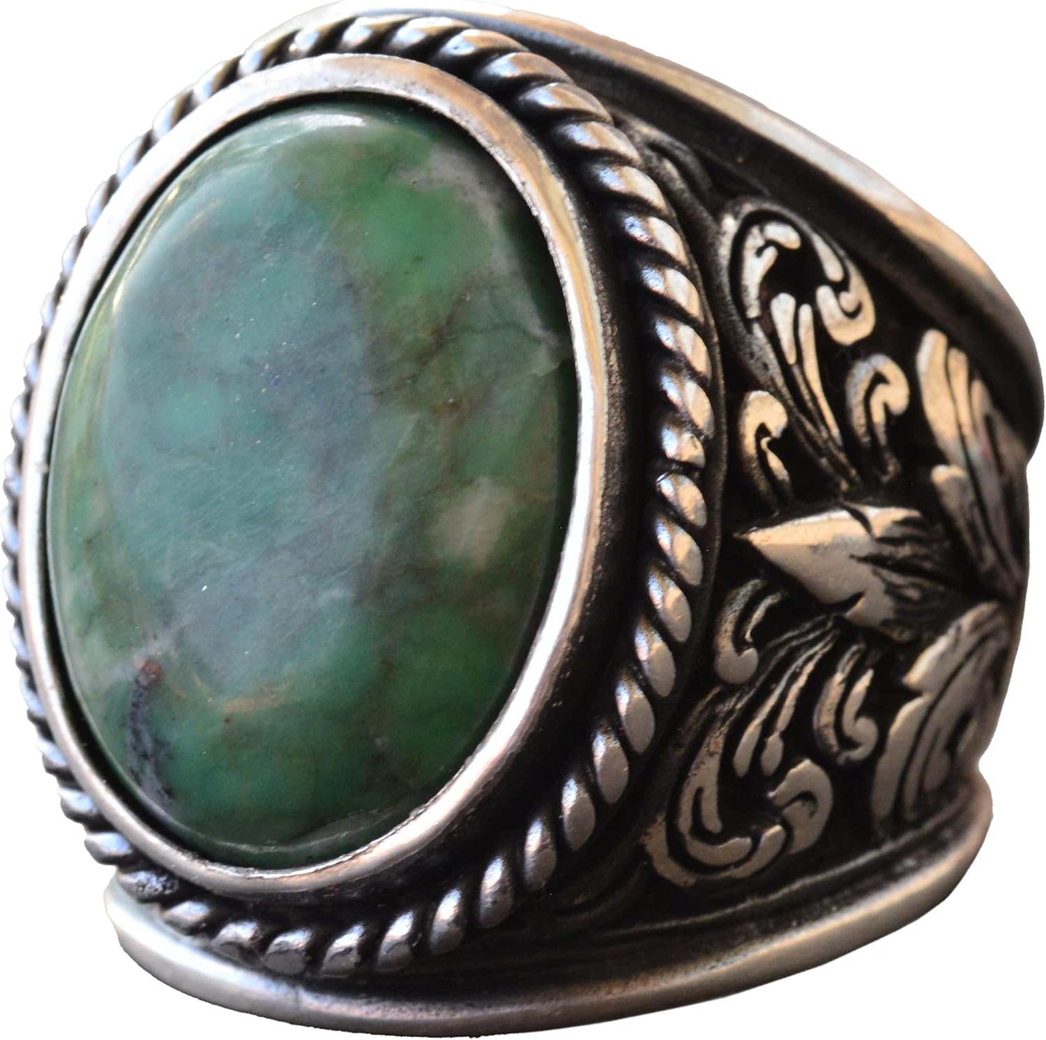 Zarif Taş Koleksiyonu için Erkekler: 925 Ayar Gümüş Yüzükler - Doğal Taş Seçimi (Krisopras)