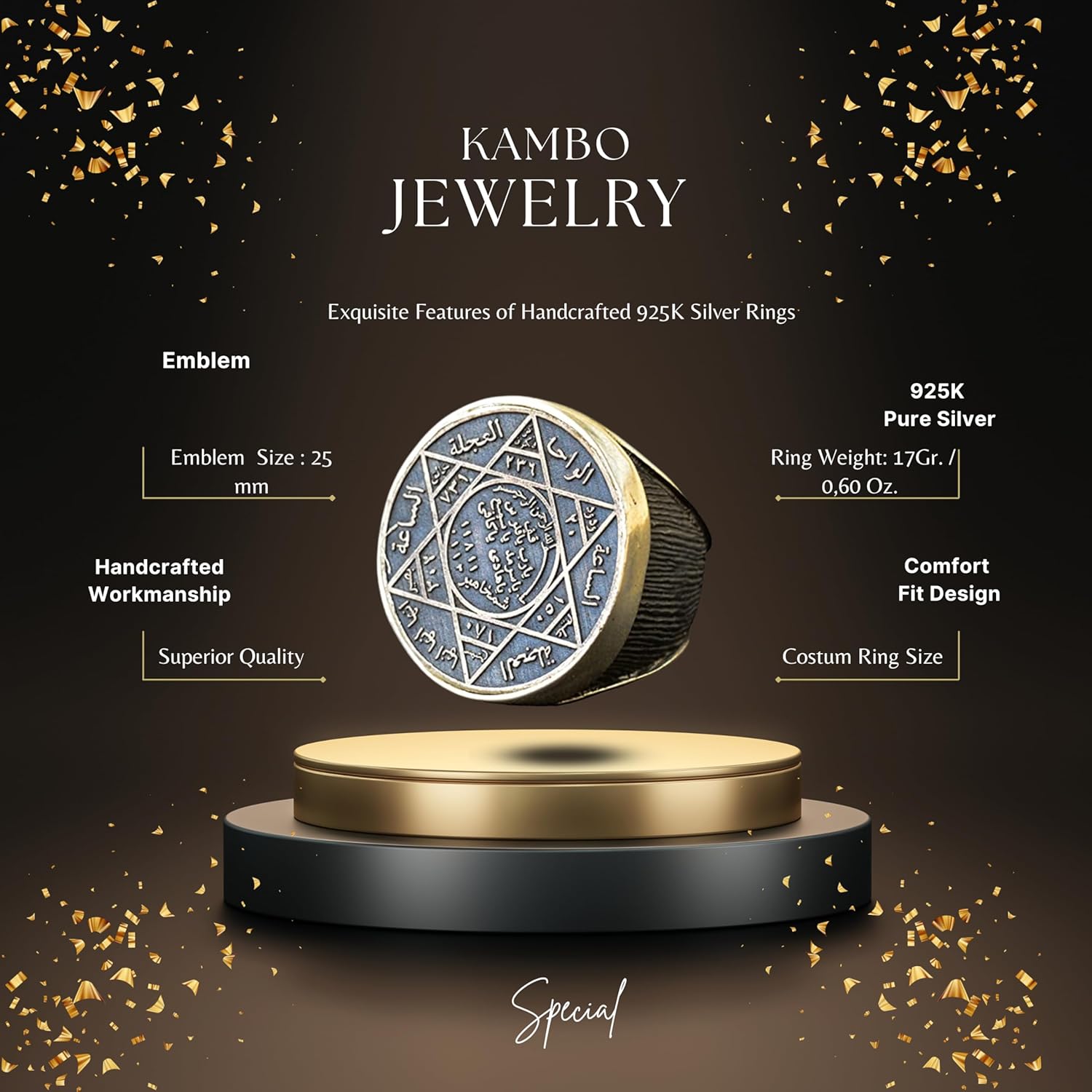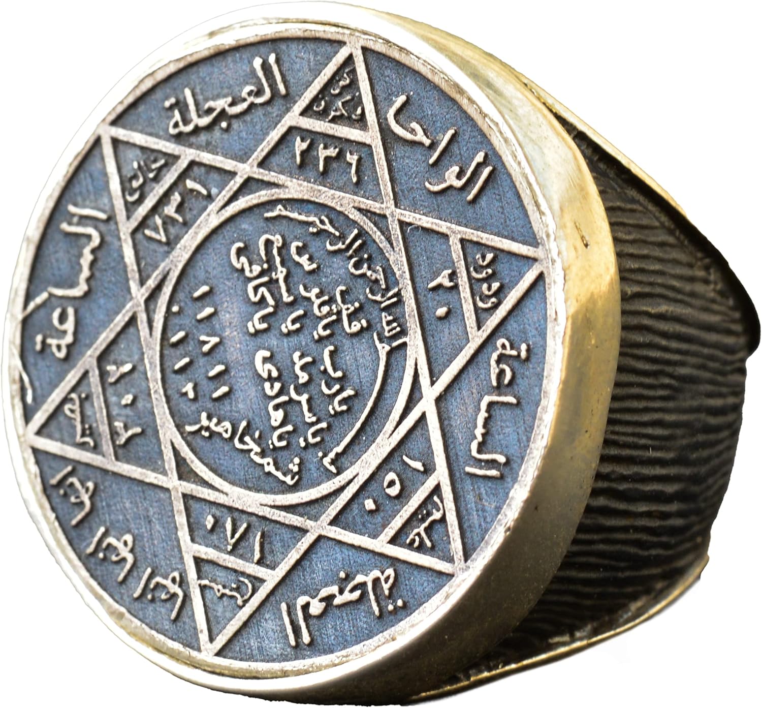 Yuvarlak Davut Yıldızı Yüzüğü, Süleyman Yüzüğü, 925 Ayar Gümüş Erkek Büyük Yüzük