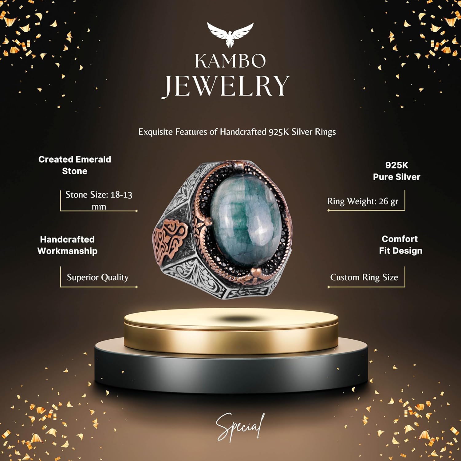 Zarif El Yapımı Cabochon Zümrüt Taşlı Yüzük, 925 Ayar Gümüş Yüzük