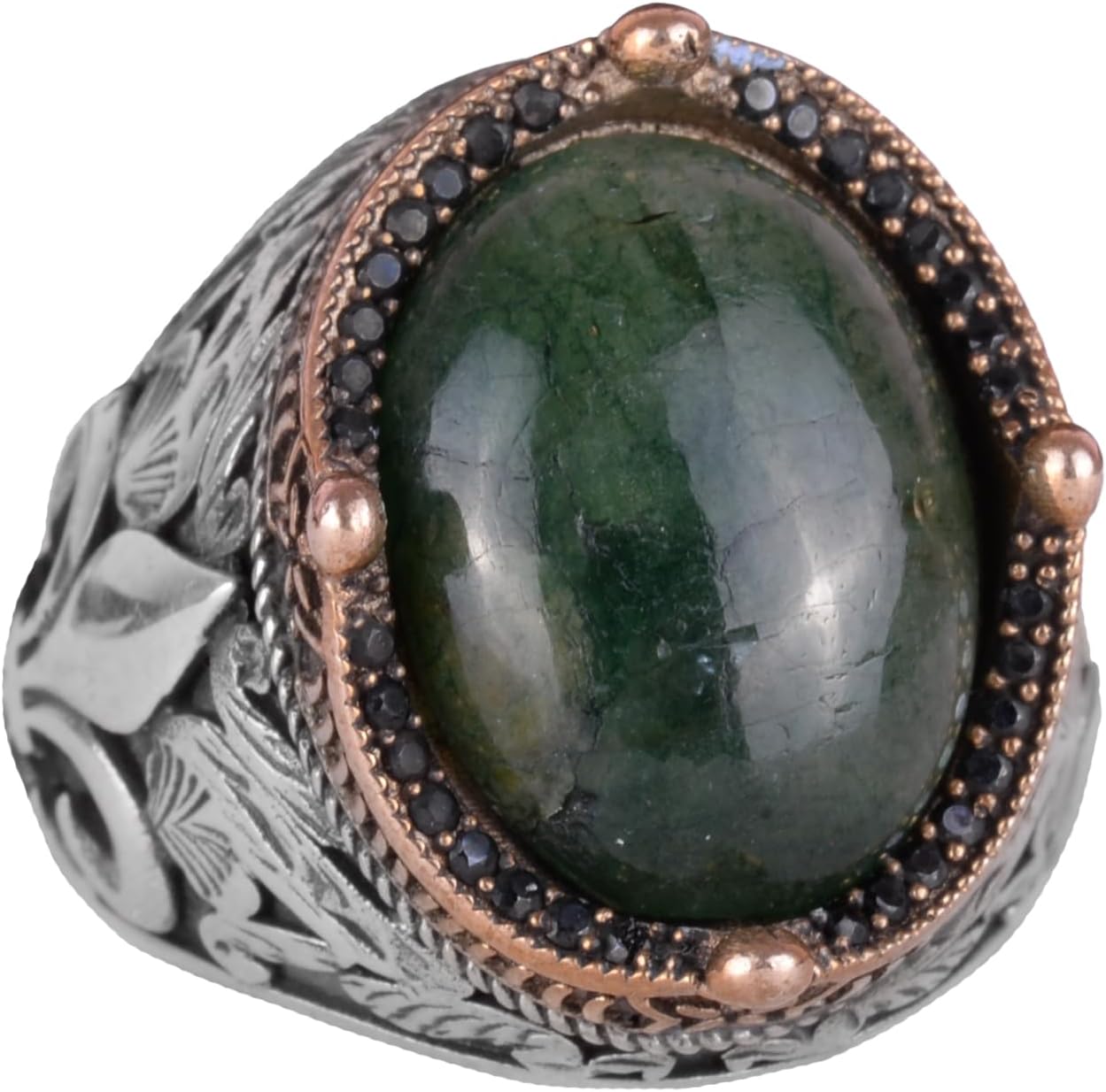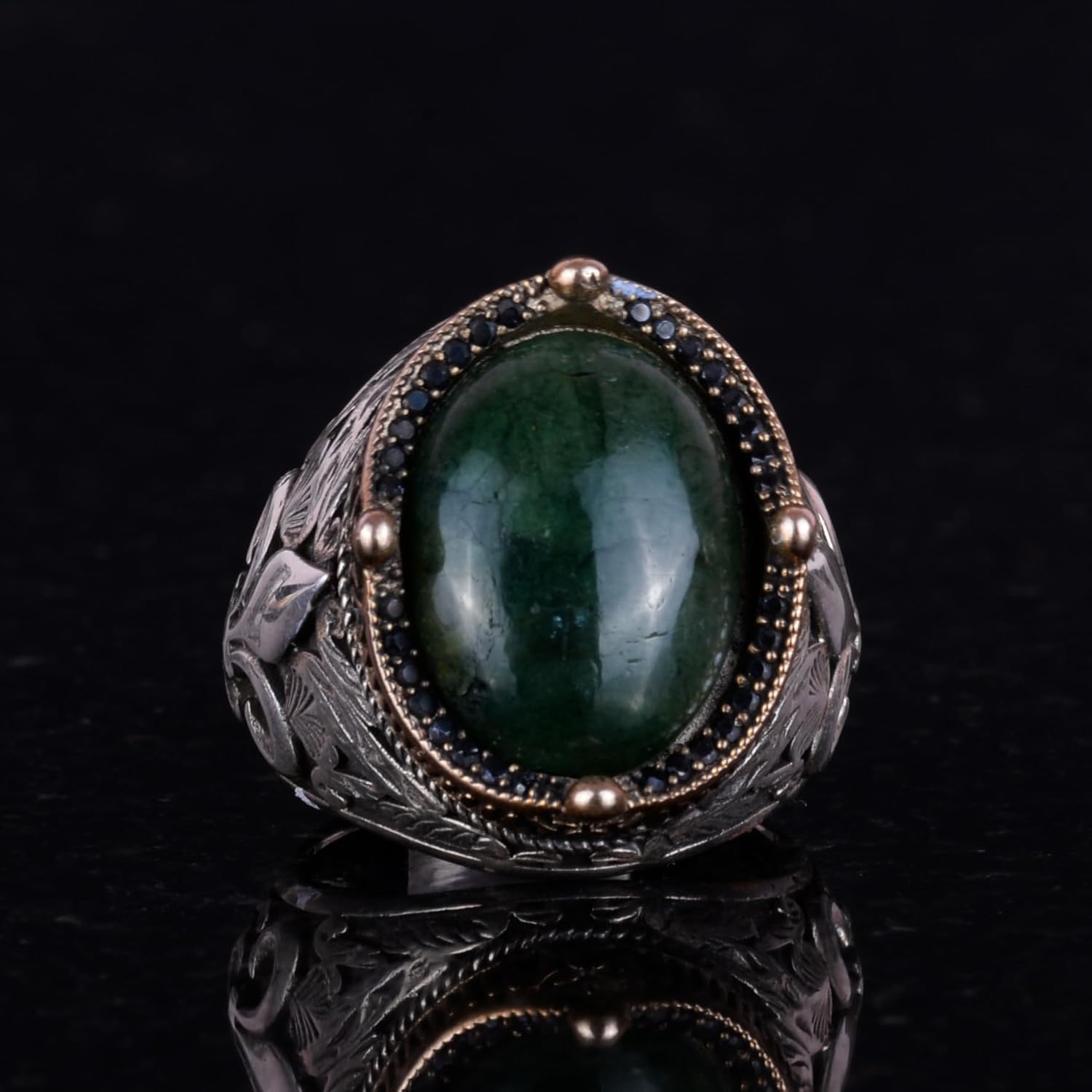 925 Ayar Gümüş El Yapımı Erkek Yüzüğü - Çeşitli Doğal Taşlarla Mevcuttur (Cabochon Zümrüt)