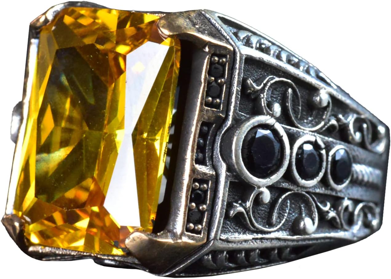 925 Ayar Gümüş Doğal Citrine Taşlı Erkek Gümüş Yüzük, Citrine Taşlı Erkek Yüzüğü, El Yapımı Oymalı Erkek Gümüş Yüzük, Türk Gümüş Yüzüğü, Sarı