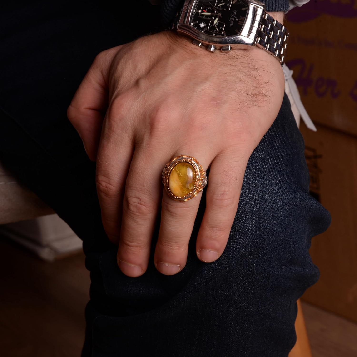 925 Ayar Gümüş Doğal Kehribar Taşlı Erkek Yüzük - El Yapımı Vintage Tarzı Takı