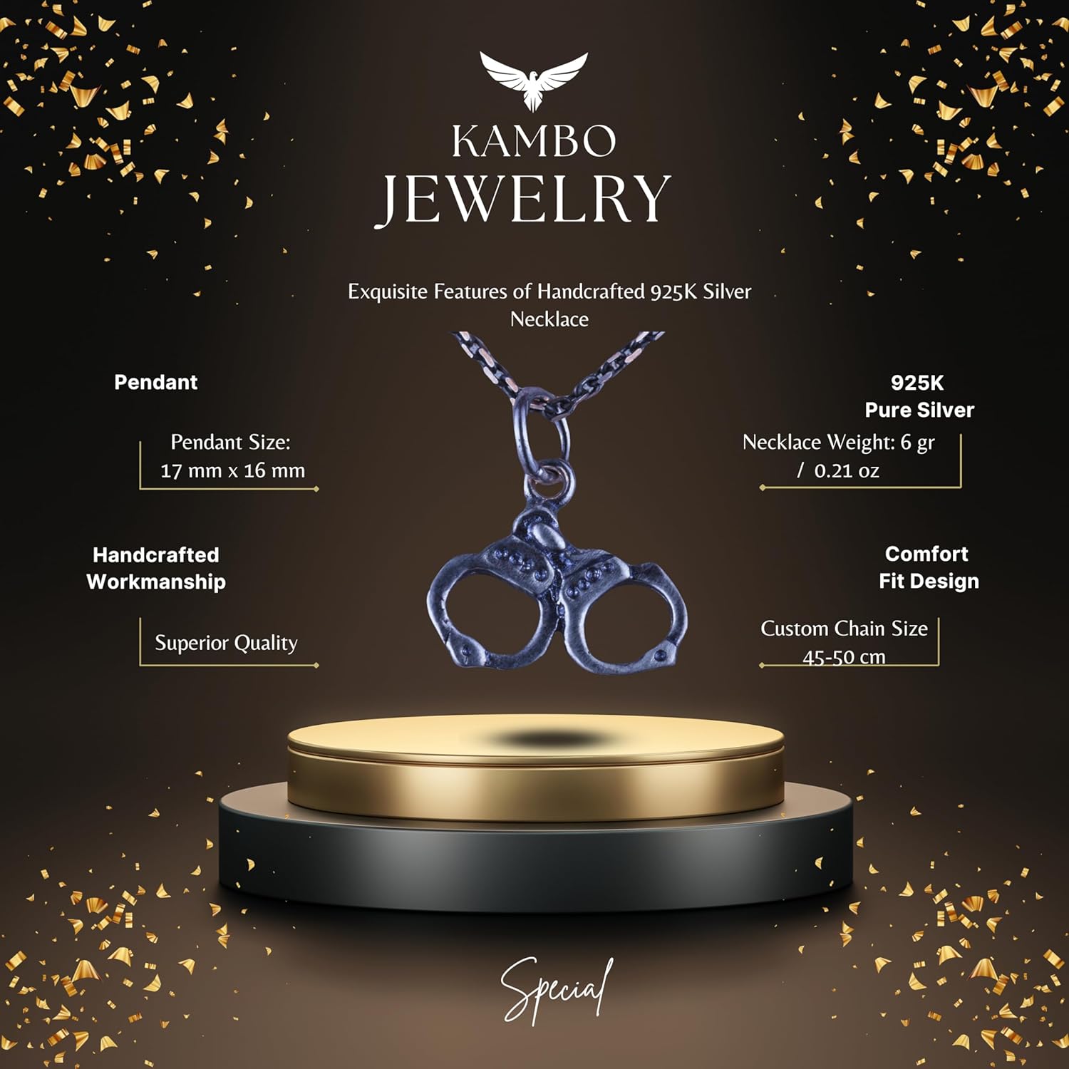 925 Ayar Gümüş Kelepçe Kolye Ucu - El Yapımı Güç ve Bağımsızlık Sembolü