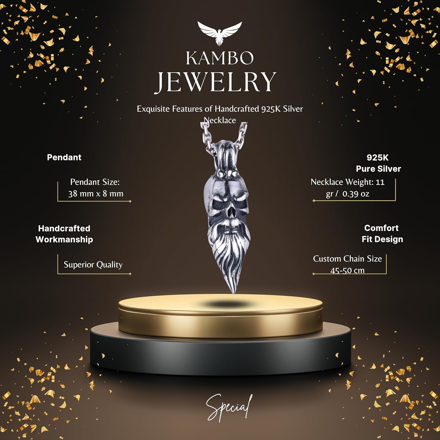 925 Ayar Gümüş Kafatası Kolye – Gotik Sakallı Kafatası Tasarımı – El Yapımı Takı Erkekler ve Kadınlar için – Gotik Hediye