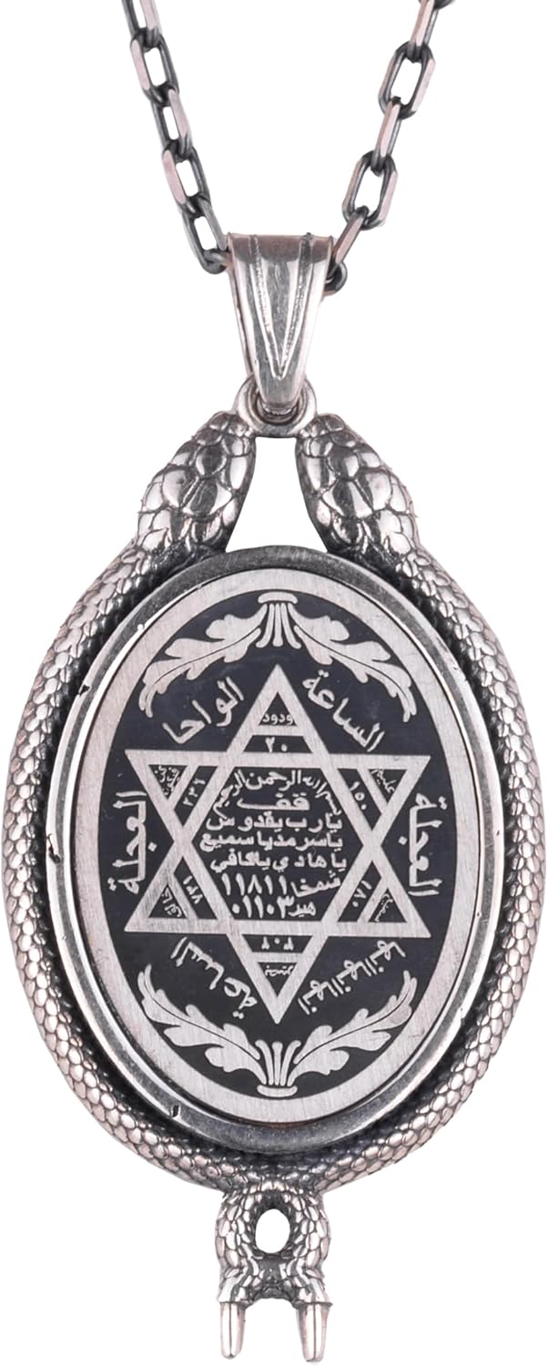 925 Ayar Gümüş Kolye - Davud Yıldızı Aksesuarı ile Yılan Detaylı Kolye