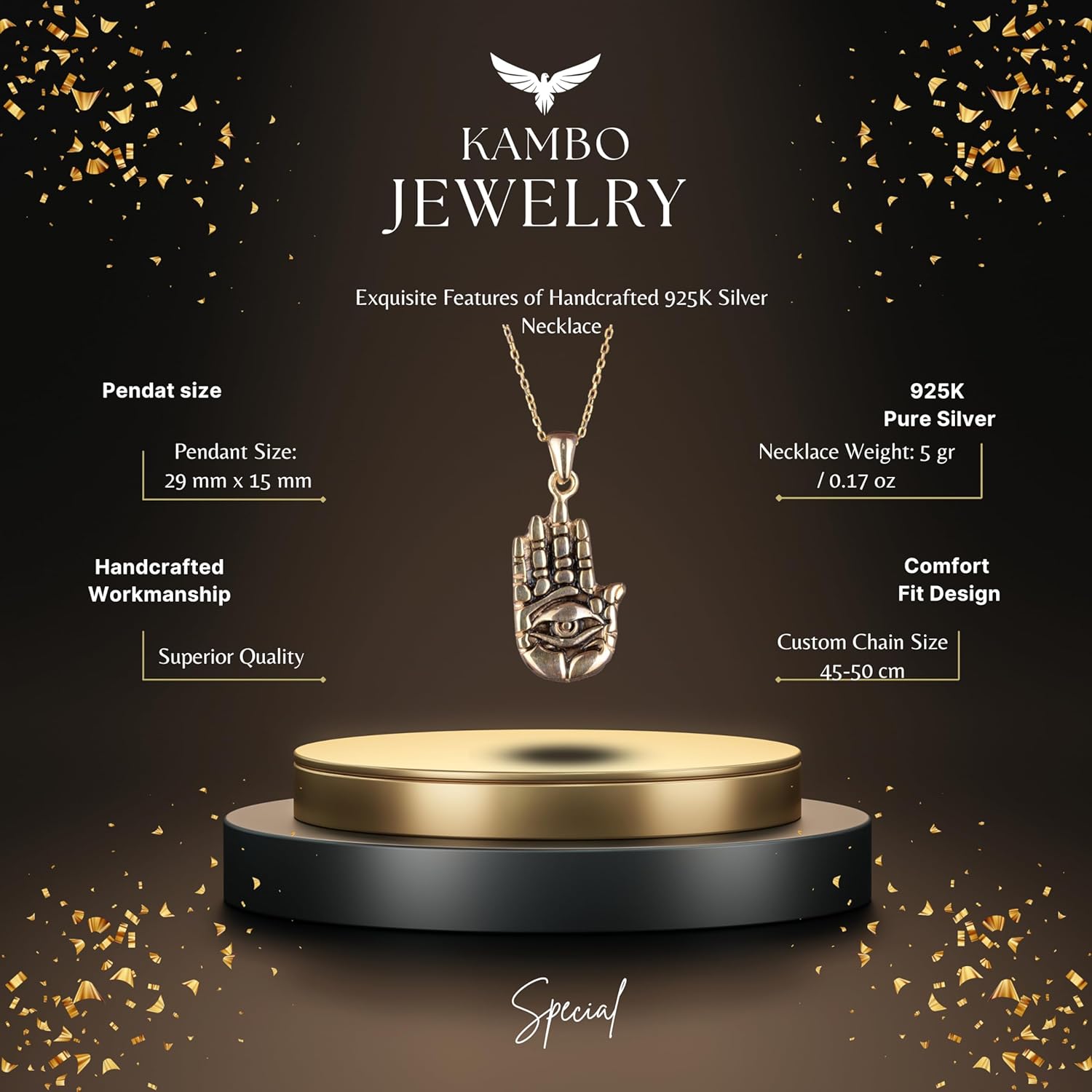 925 Ayar Gümüş Hamsa Kolye Ucu - El Yapımı Kolye