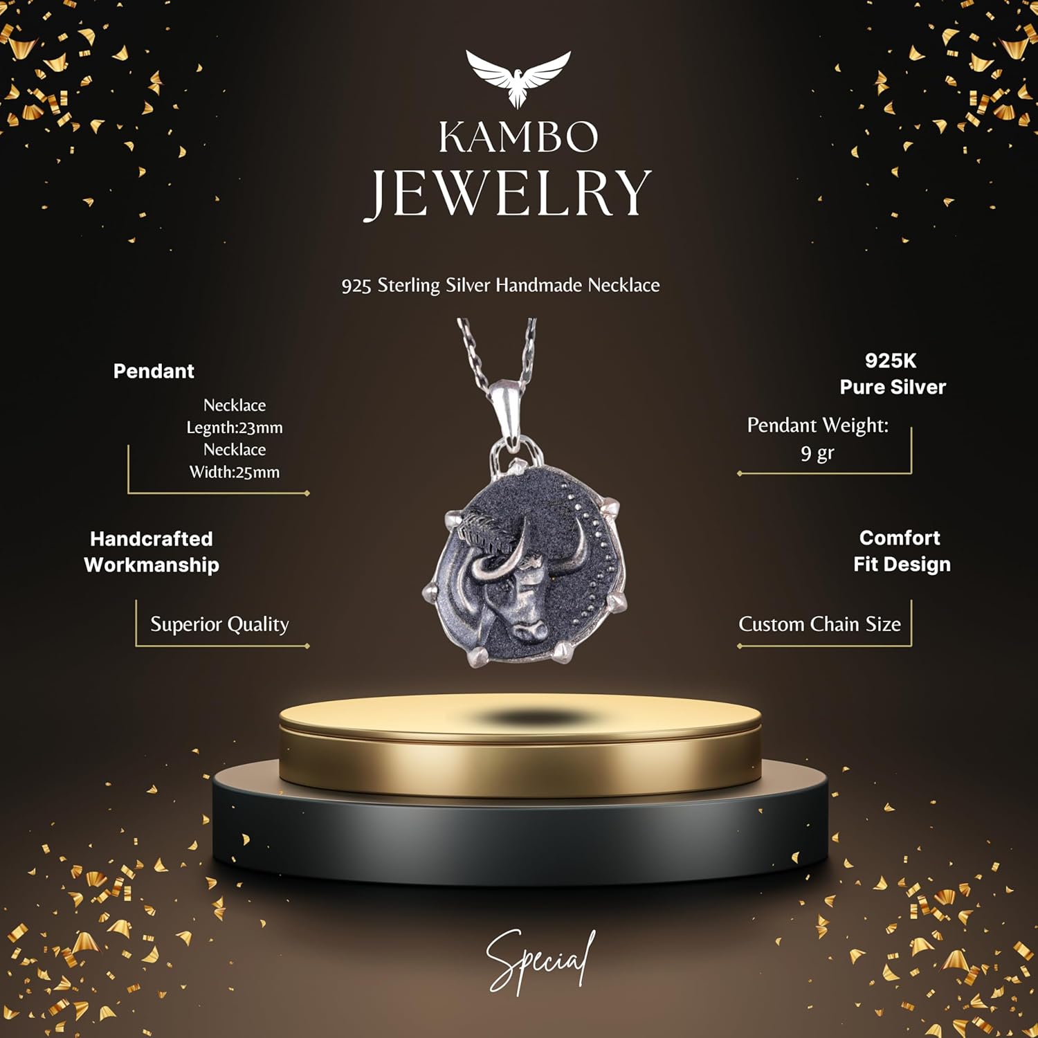 925 Ayar Gümüş Tasarım Kolye Ucu - Burç Kolyeleri - El Yapımı Kolye (Boğa)