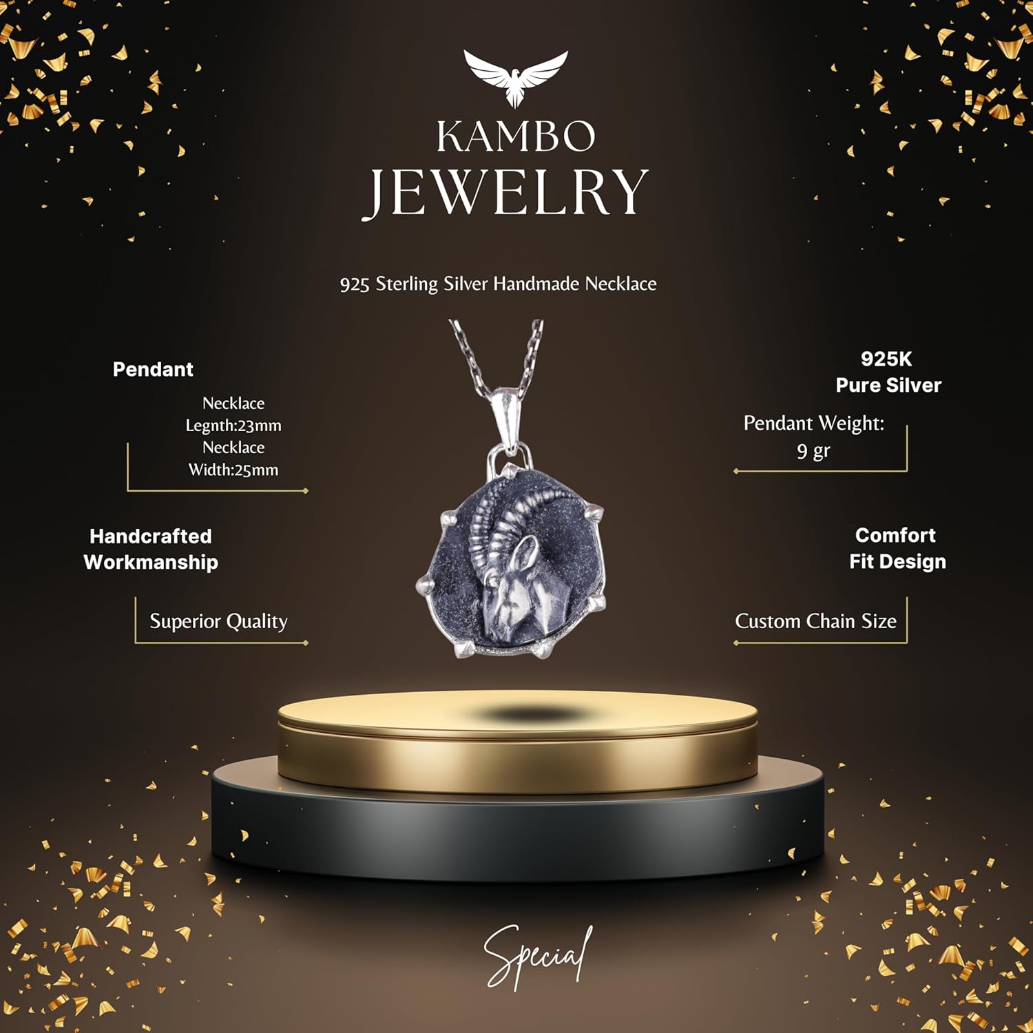 925 Ayar Gümüş Tasarım Kolye Ucu - Burç Kolyeleri - El Yapımı Kolye (Oğlak)