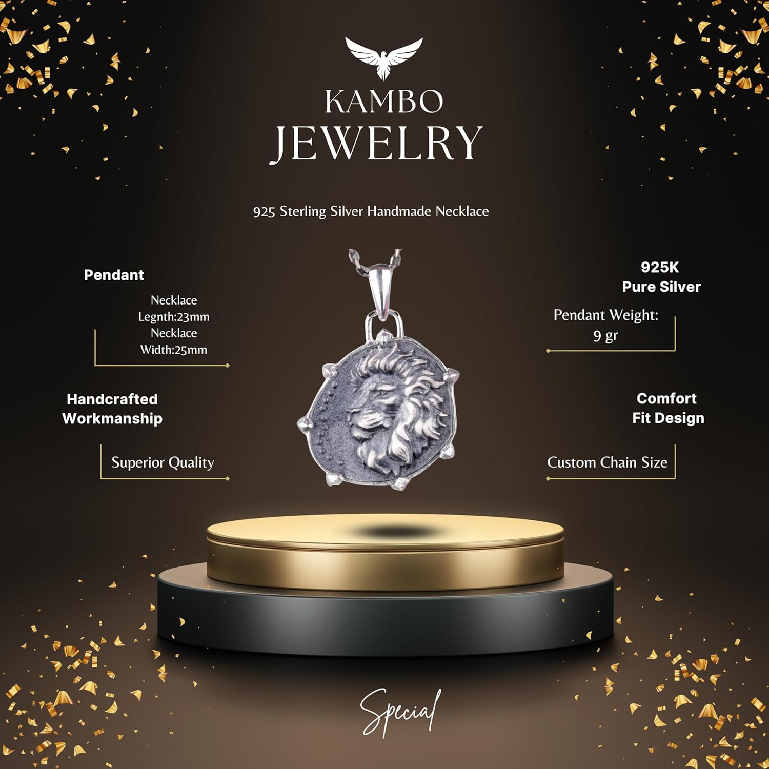 925 Ayar Gümüş Tasarım Kolye Ucu - Burç Kolyeleri - El Yapımı Kolye (Aslan)