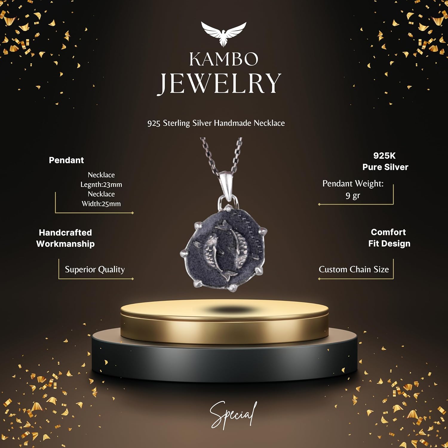 925 Ayar Gümüş Tasarım Kolye Ucu - Burç Kolyeleri - El Yapımı Kolye (Balık)