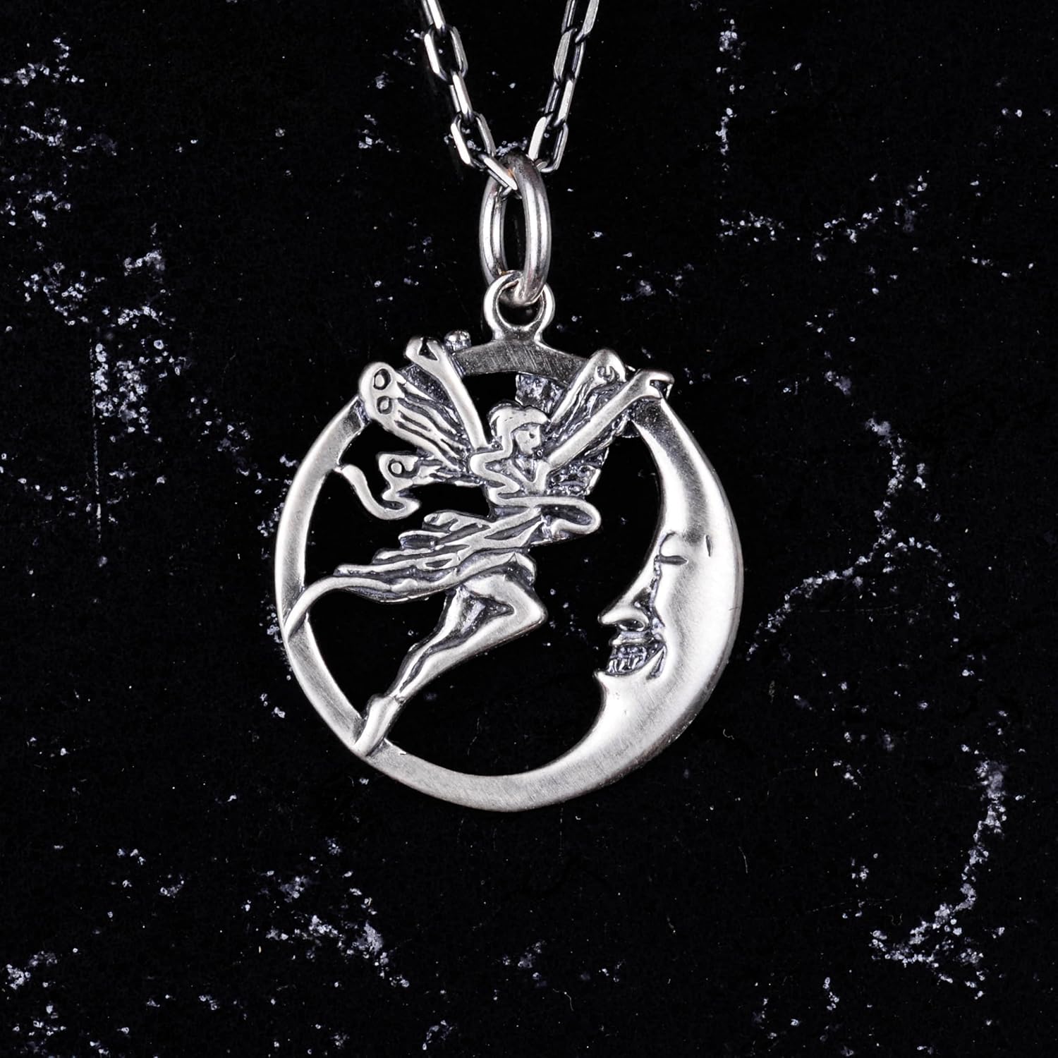 925 Ayar Gümüş Peri ve Ay Kolye, El Yapımı Fantezi Kolye, Özgün Gümüş Takı