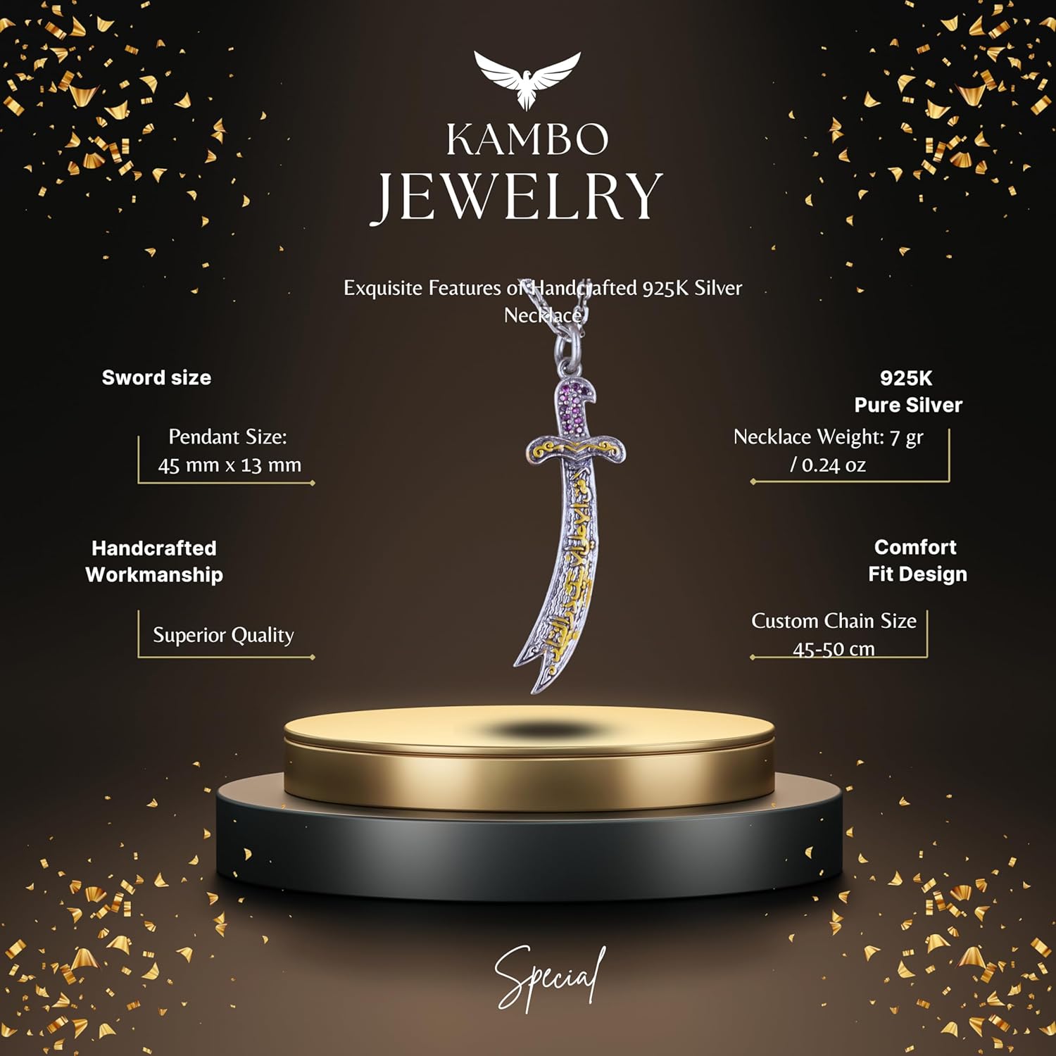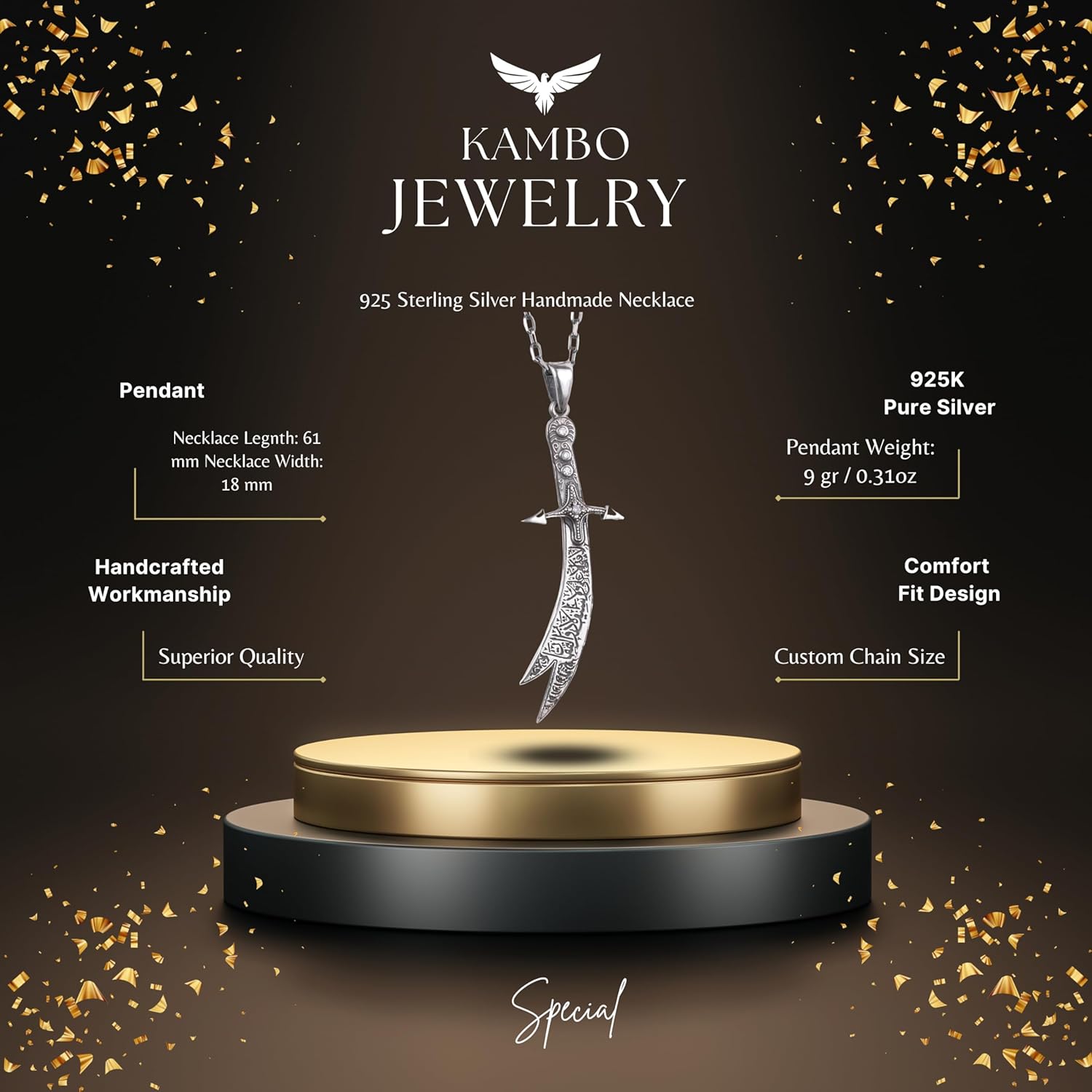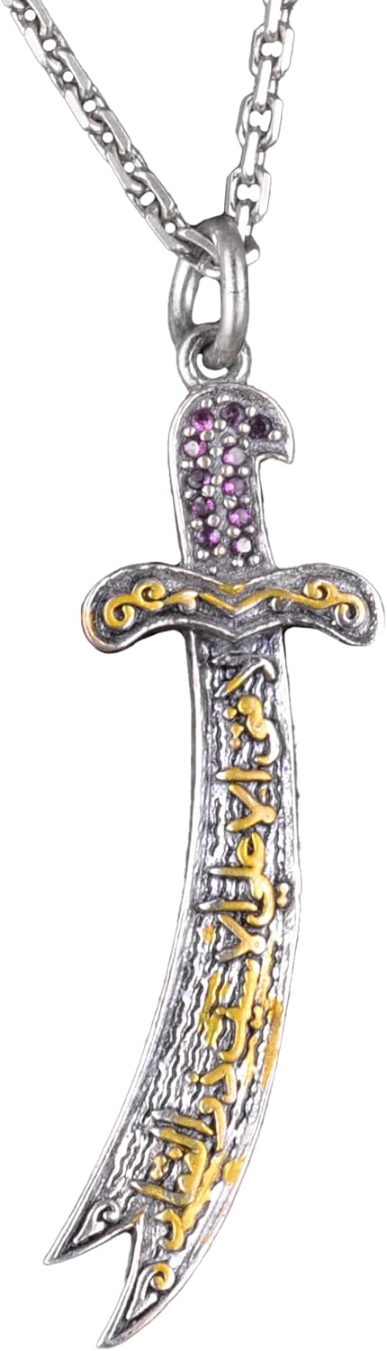 925 Ayar Gümüş Zulfiqar Kılıcı Kolye - Zirkon Taşlı İslami Takı