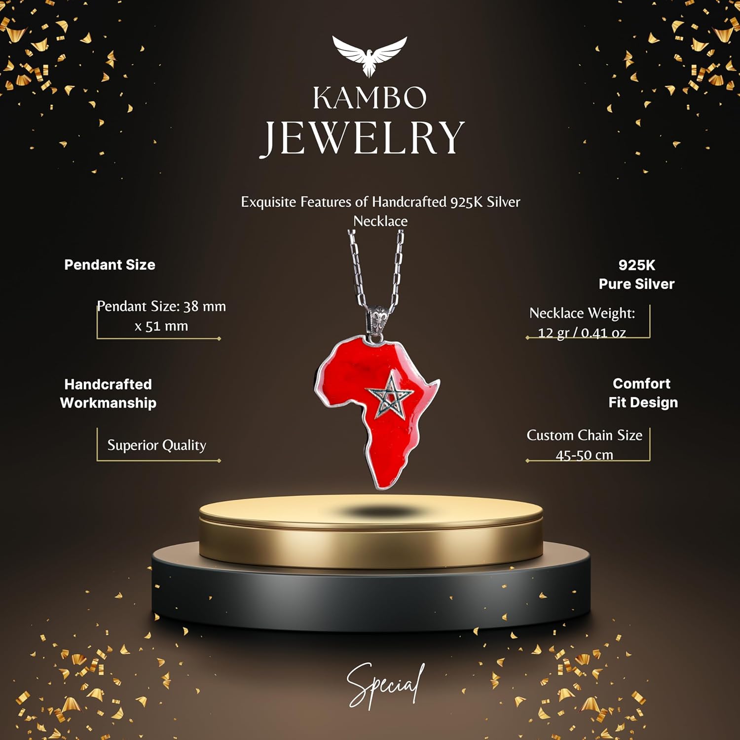 925 Ayar Katı Gümüş Harita Kolye (Fas) ile Kablo Zincir
