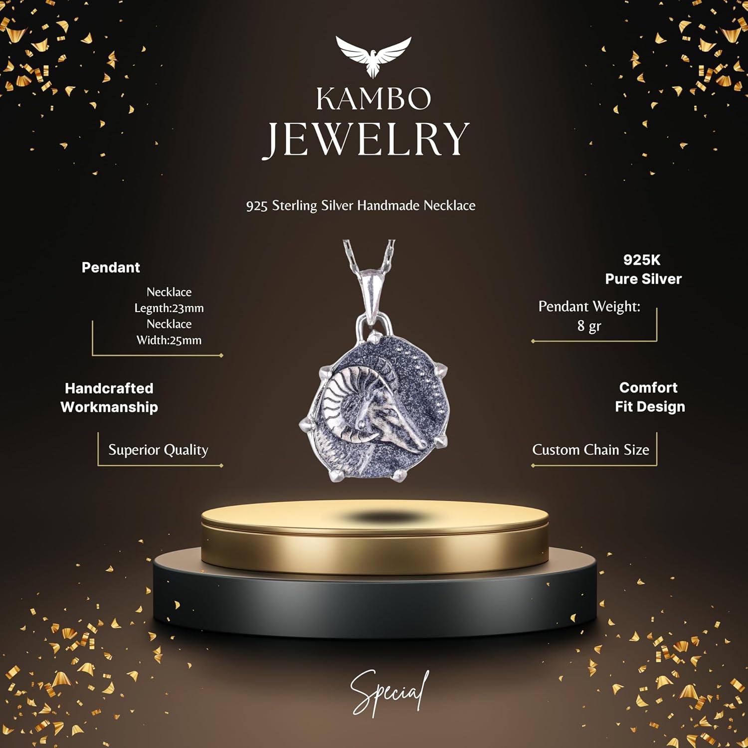 925 Ayar Gümüş Tasarım Kolye Ucu - El Yapımı Kolye (Koç)