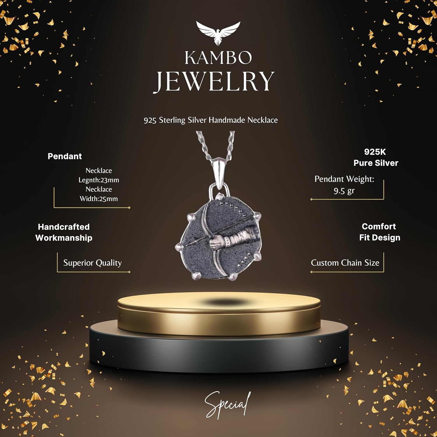 925 Ayar Gümüş Tasarım Kolye Ucu - Burç Kolyeleri - El Yapımı Kolye (Yay)