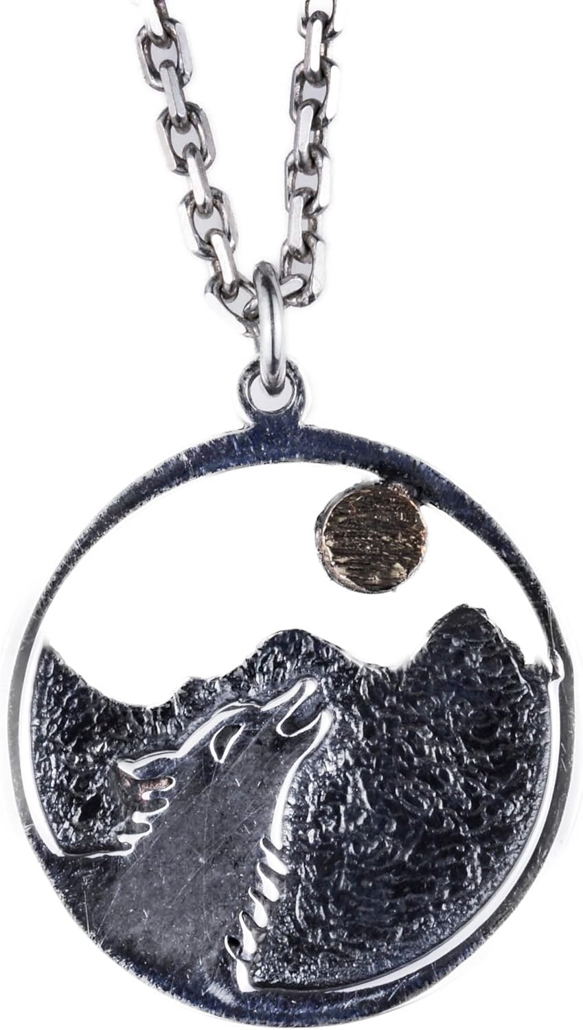 925 Ayar Gümüş Uluyan Kurt Kolye, Dağ ve Ay Tasarımı, Hayvan Severler için Doğa İlhamlı Takı