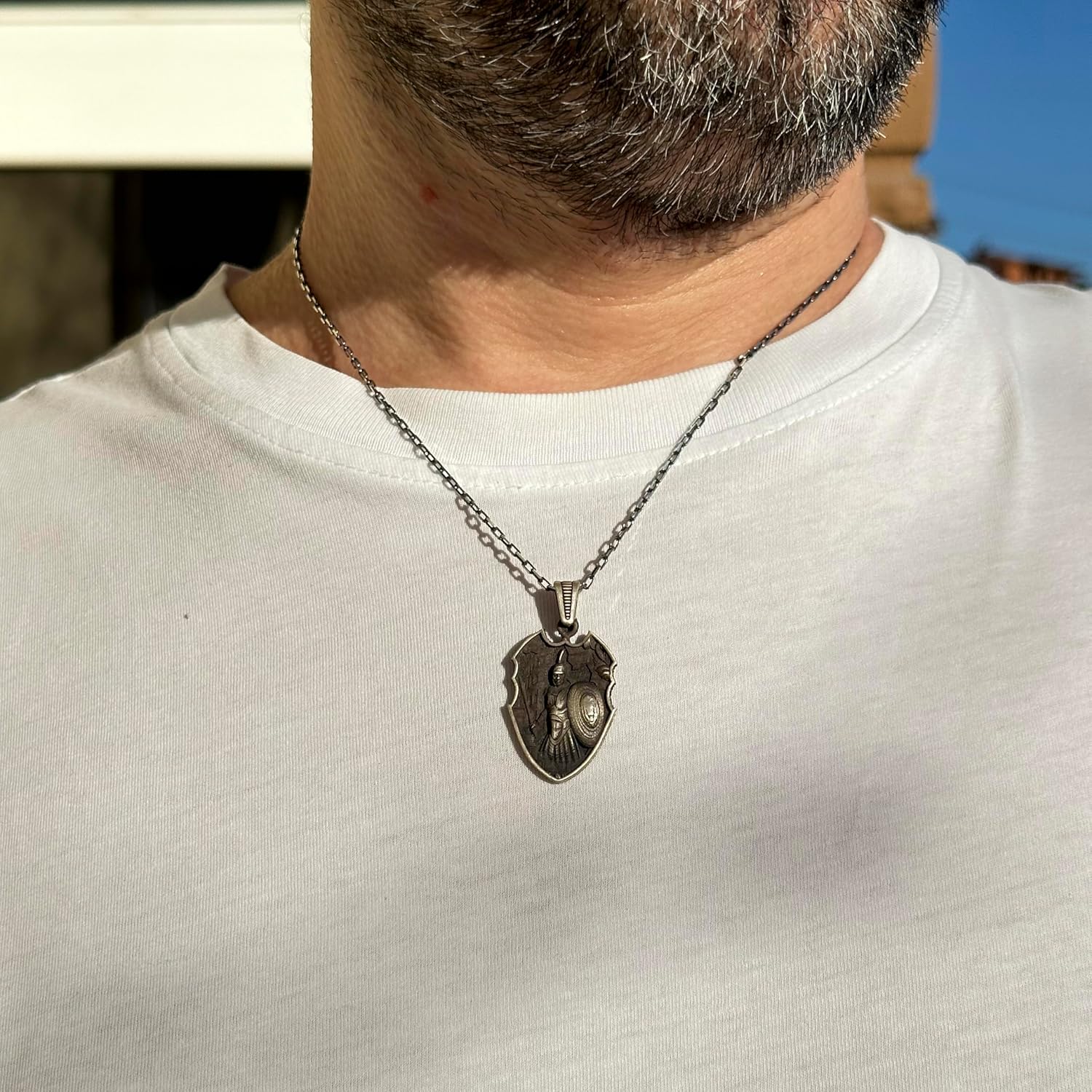 925 Ayar Gümüş, Spartalı Savaşçı Kolye, Erkekler için Hediye Gümüş Zincir ile