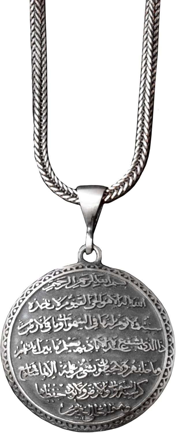 Sterling Gümüş Erkek Ayatul Kursi Kolye, İslami Kolye, Gri