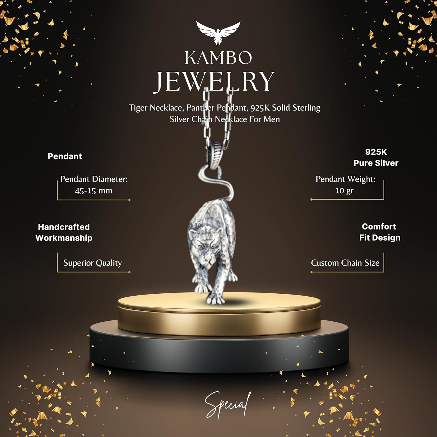 Kaplan Kolye, Panter Kolye Ucu, 925 Ayar Katı Gümüş Zincir Kolye Erkekler İçin