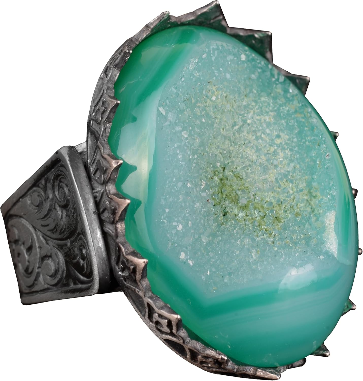 Erkekler için 925 Ayar Gümüş Yüzük, Doğal Druzy Kuvars: Aqua, Yeşil, Bej Seçenekleri (Aqua)