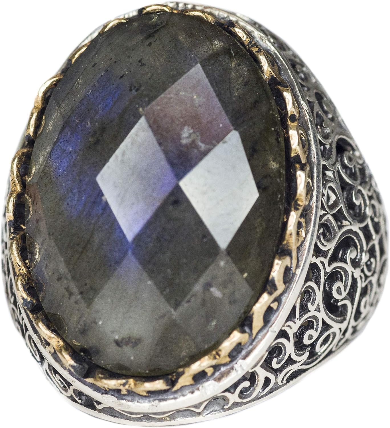 Erkekler için 925 Ayar Gümüş Yüzük, Doğal Labradorit Taşı