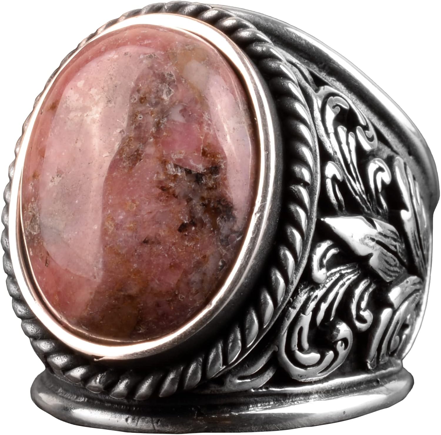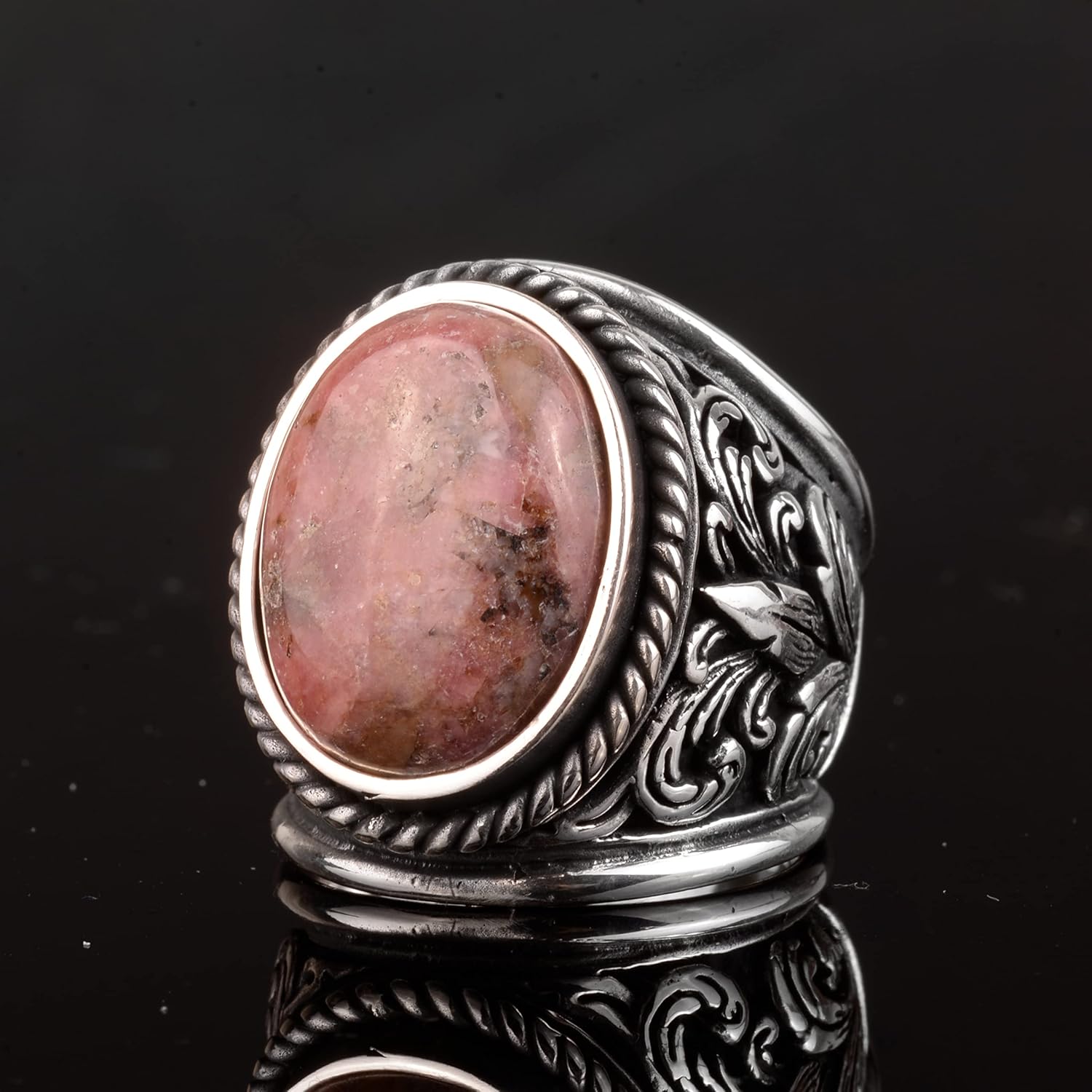 Erkekler için 925 Ayar Gümüş Yüzükler - Doğal Taş Seçimi (Rhodonite)