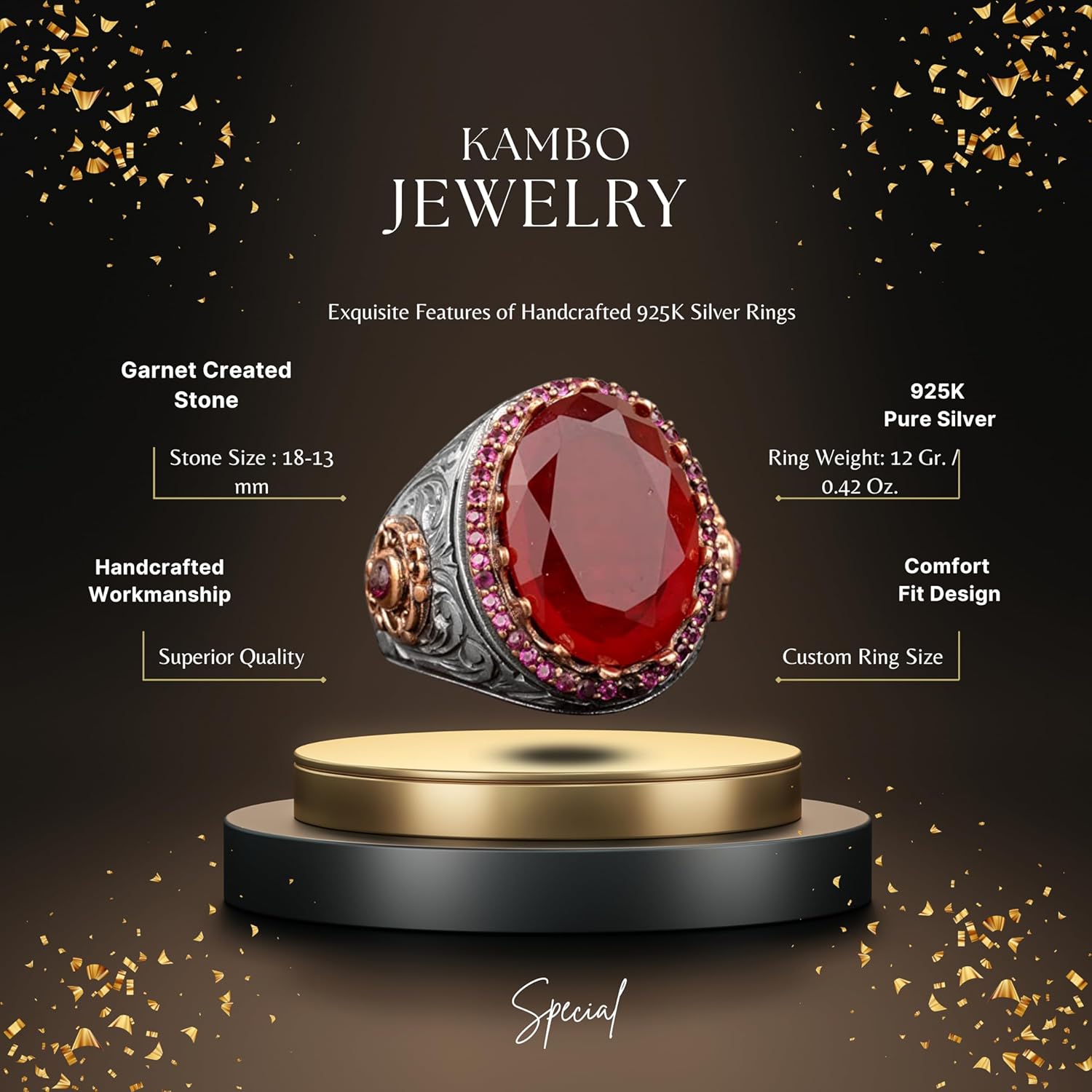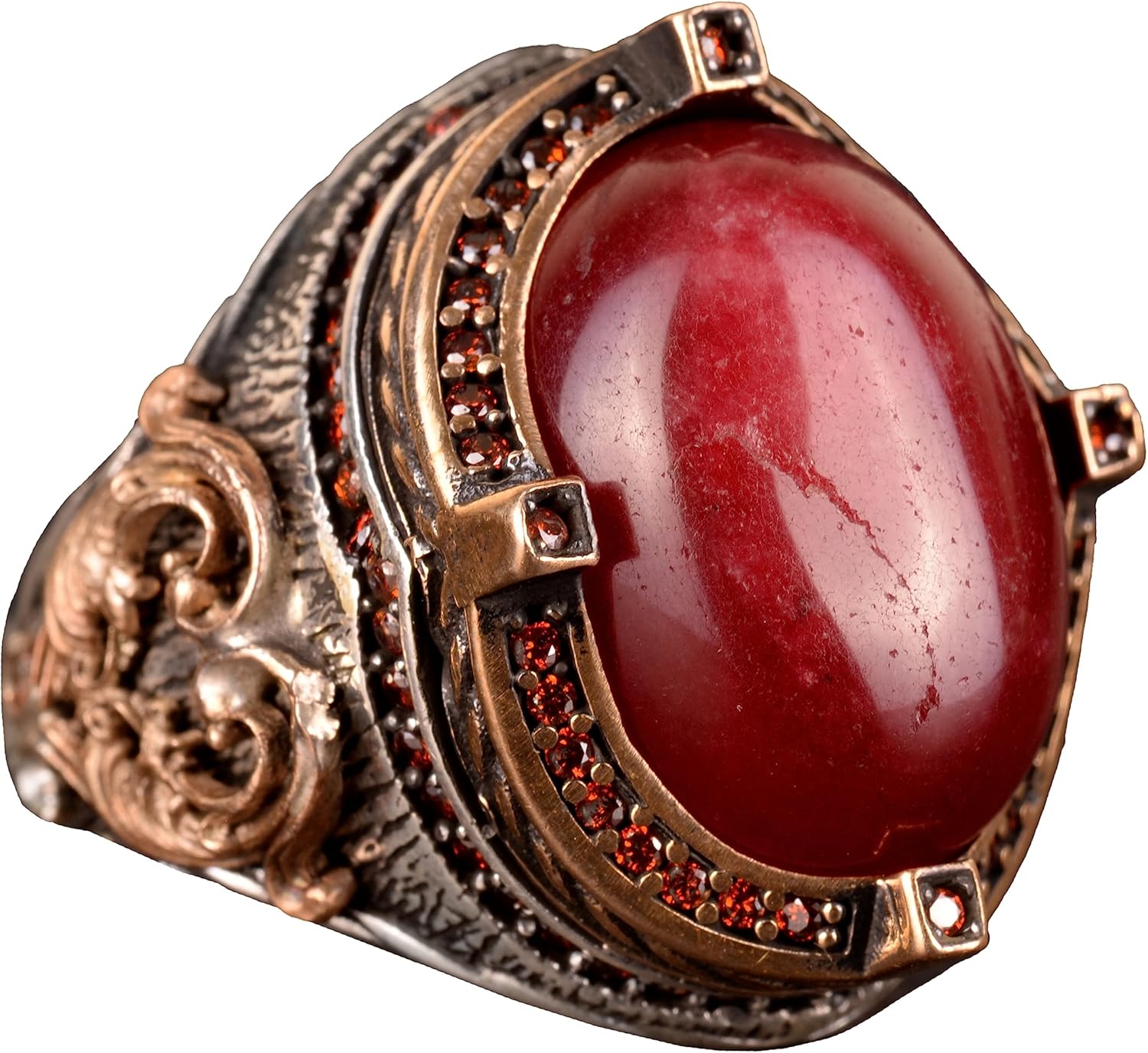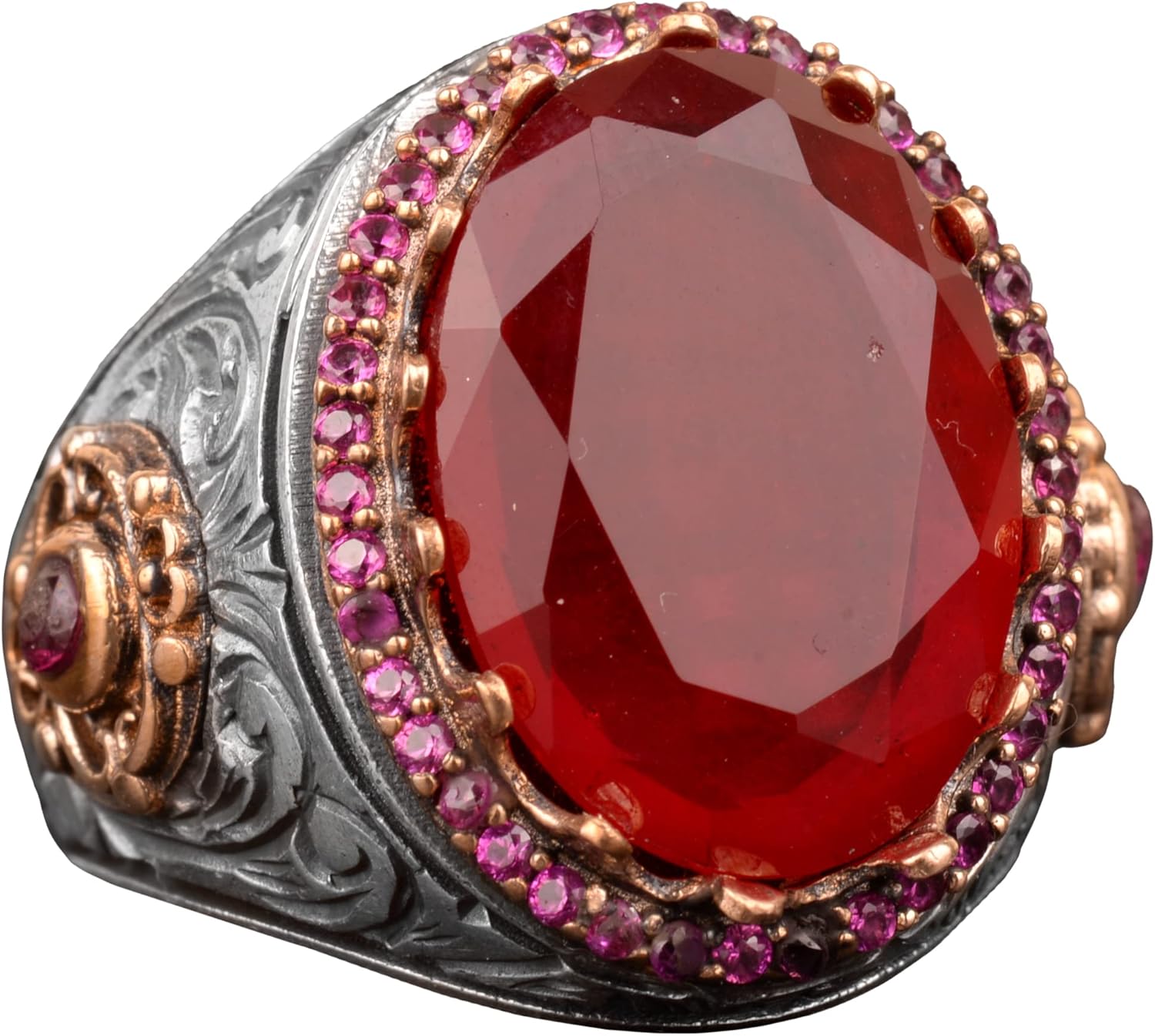 Erkekler için Gümüş Yüzük, Gerçek Doğal Cabochon Yakut Taşlı Yüzük, Yakut Yüzük, El Yapımı Yüzük