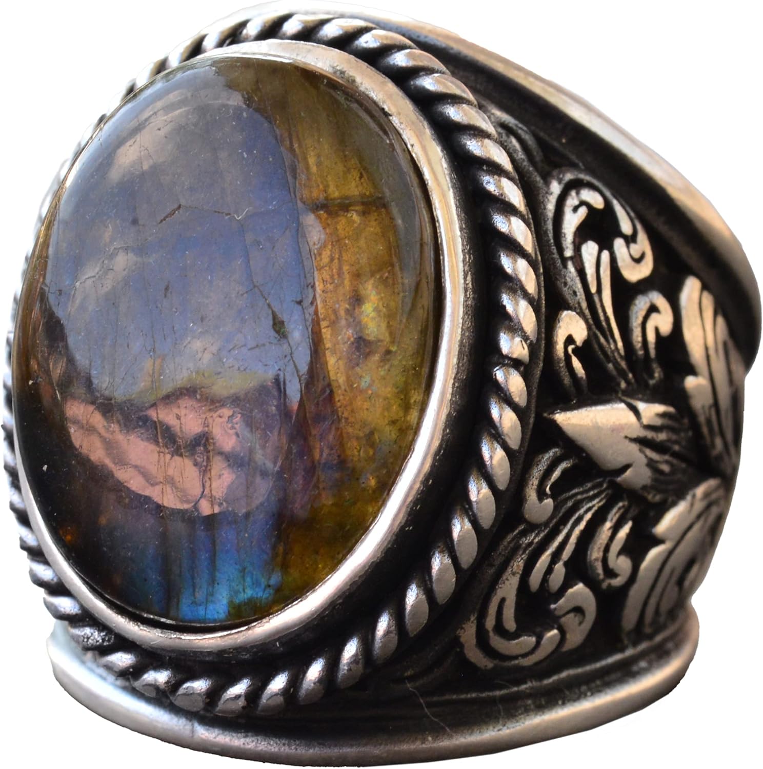 Erkekler için İnce Taş Koleksiyonu: 925 Ayar Gümüş Yüzükler - Doğal Taş Seçimi (Labradorit)