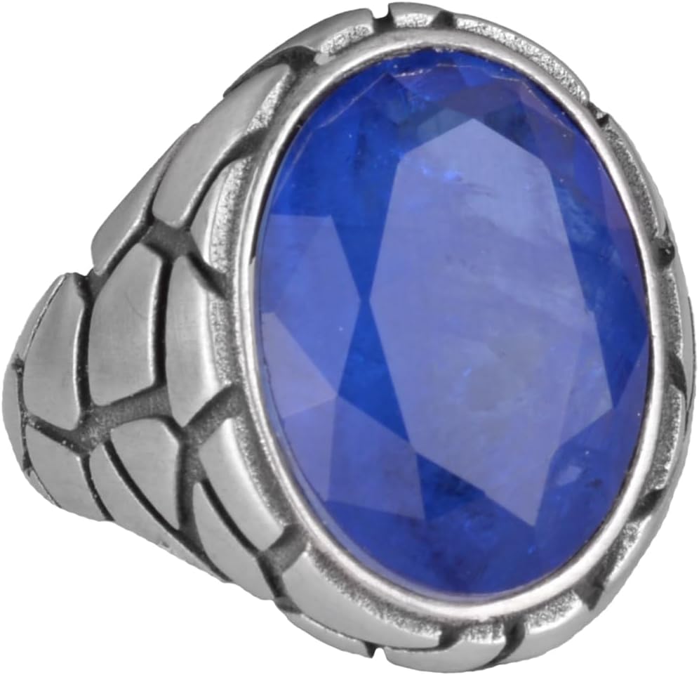 Erkekler için Lüks 925 Ayar Gümüş Yapay Taş Yüzükler - Farklı ve Çeşitli Koleksiyon (Lacivert Paraiba Yapay Taşı)