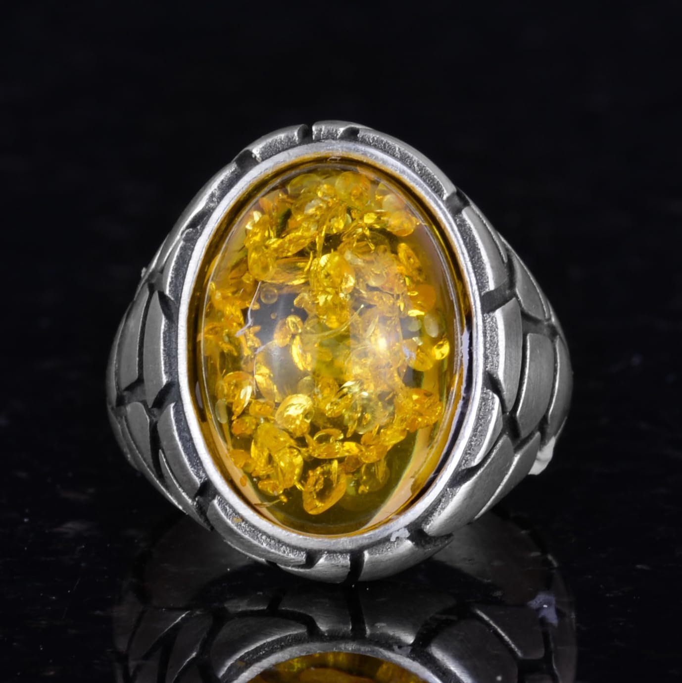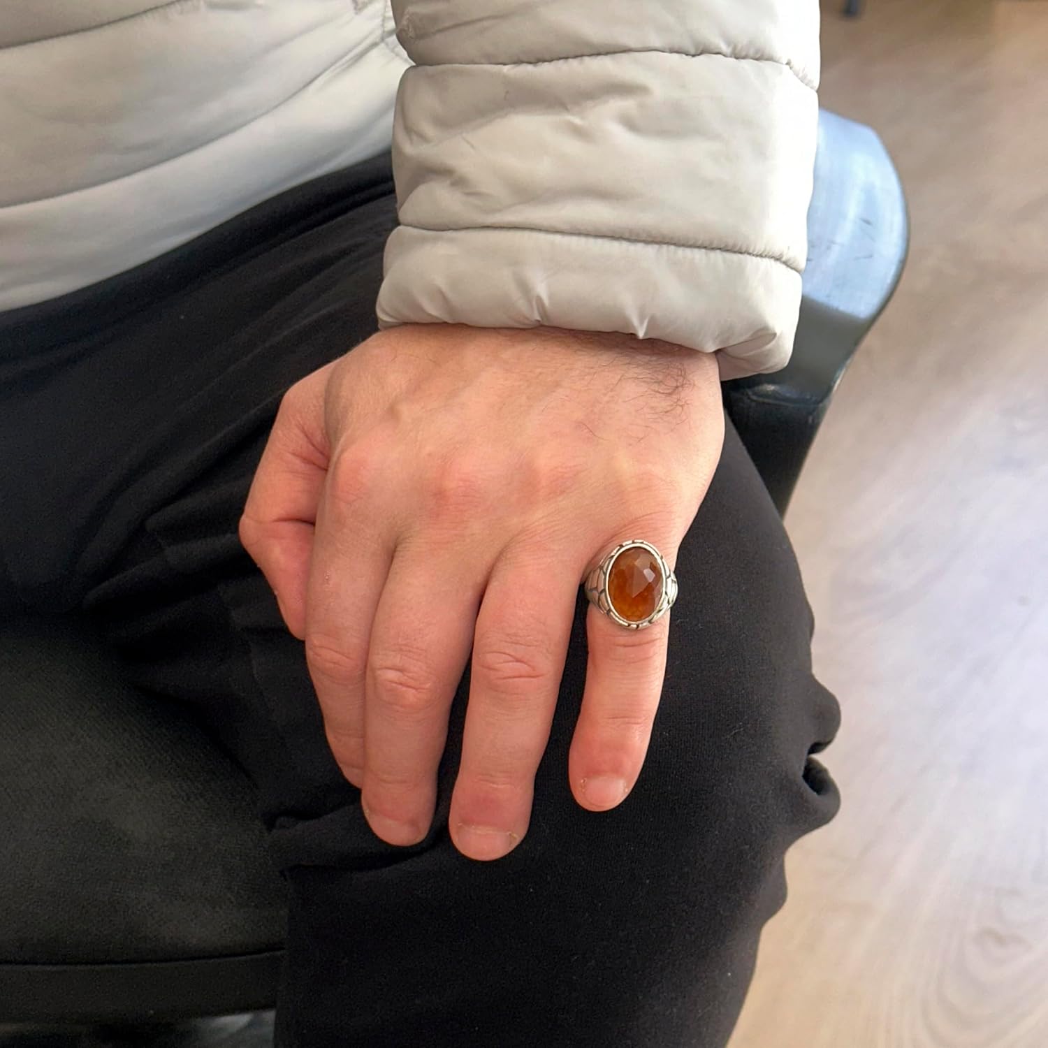 Erkekler için Lüks 925 Ayar Gümüş Yapay Taş Yüzükler - Çeşitli Koleksiyon (Bal Amberi Yapay Taş)