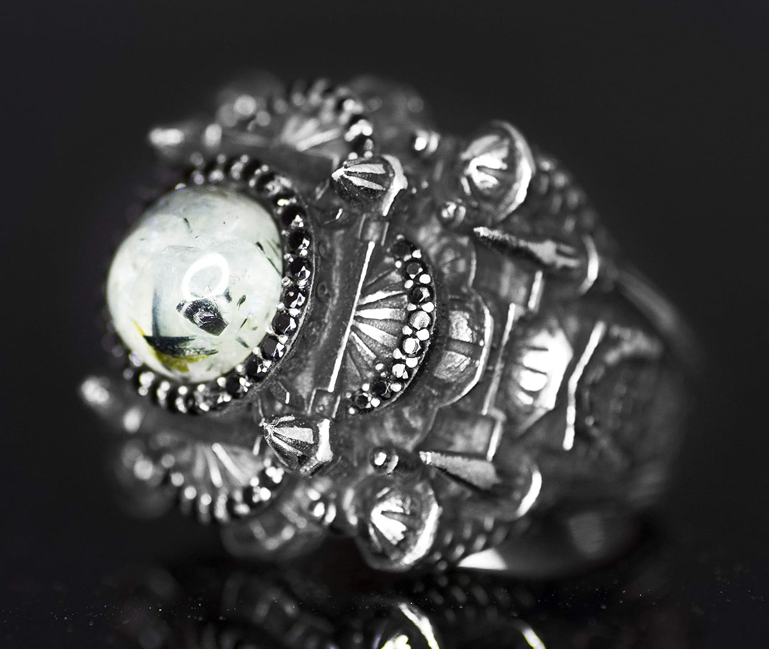 Erkekler İçin Lüks 925 Ayar Gümüş Yapay Taş Yüzükler - Çeşitli Koleksiyon (Dumanlı Kuvars Yapay Taş)