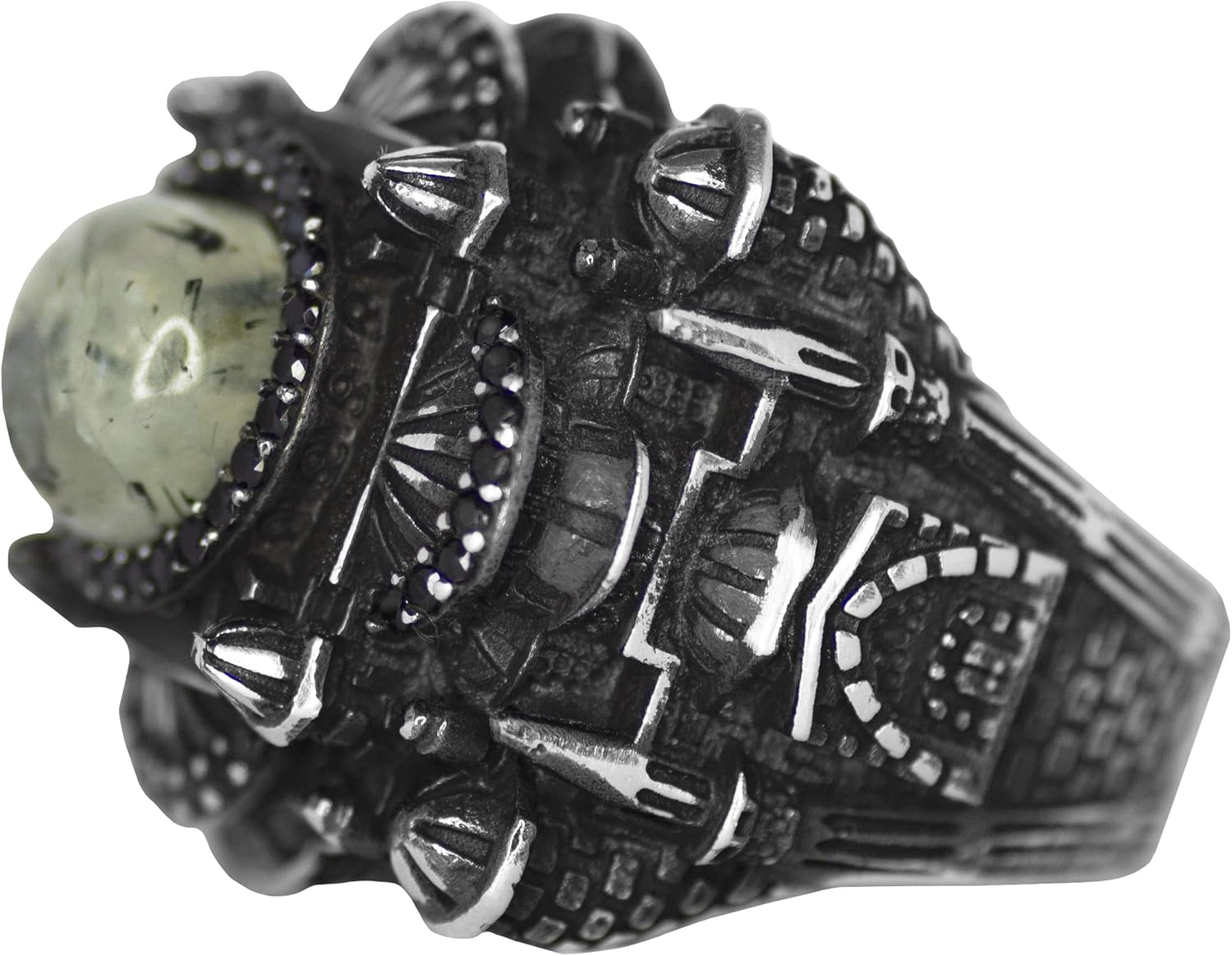 Erkekler için Lüks 925 Ayar Gümüş Yüzük, Doğal Prehnit Jade Taşı - Şık ve Görkemli Tasarım