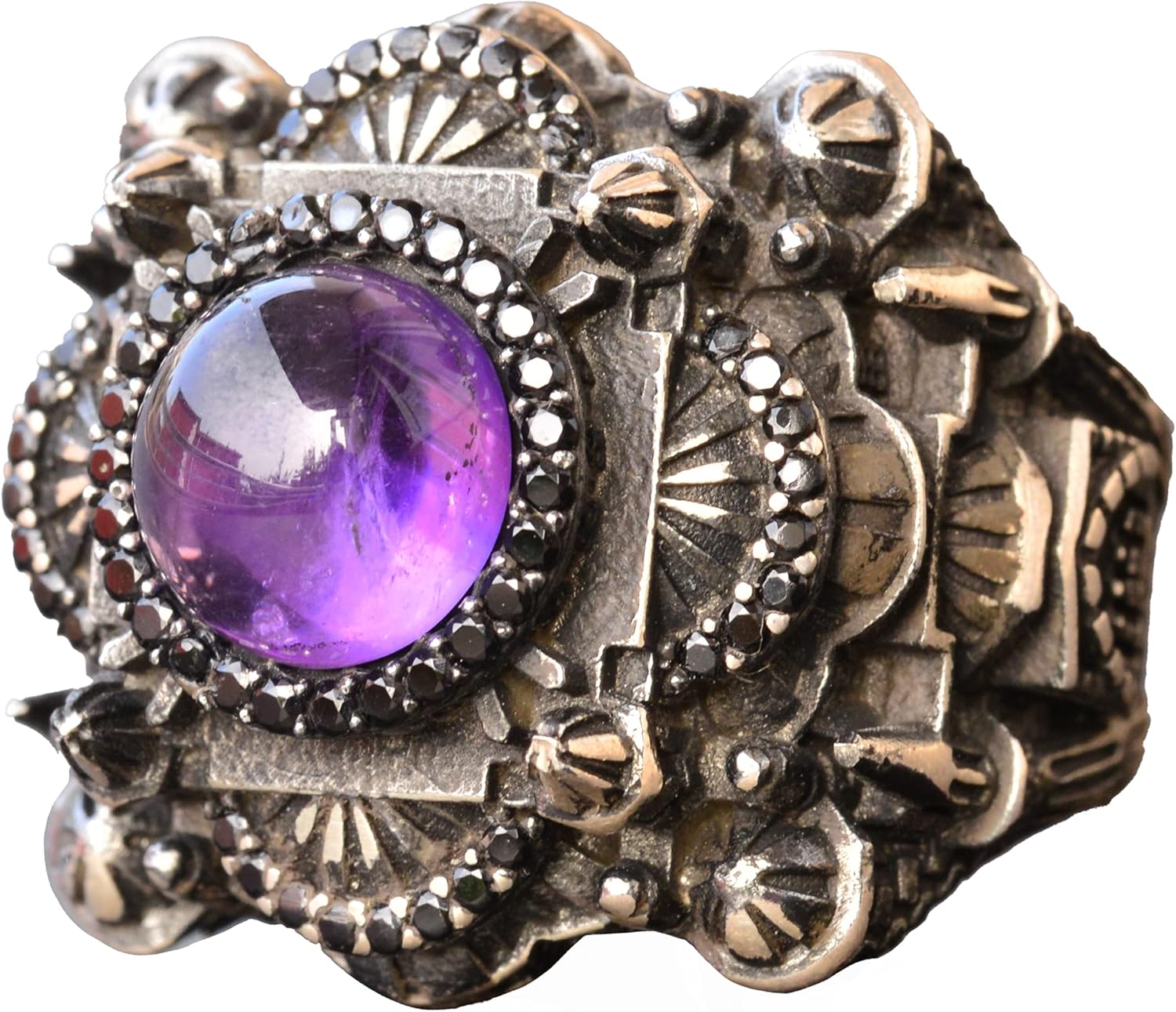 Erkekler için Lüks 925 Ayar Gümüş Yüzük - Doğal Ametist Taşı ile Şahane ve Görkemli Tasarım