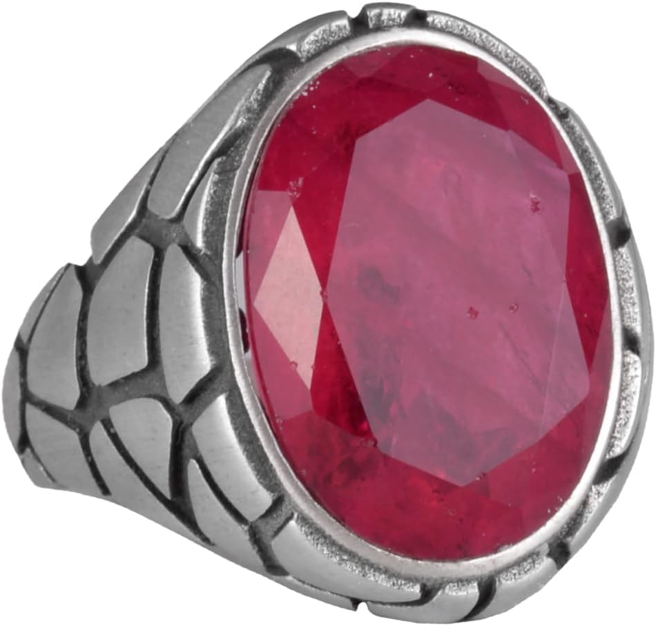 Erkekler için Lüks 925 Ayar Gümüş Yaratılan Taşlı Yüzükler - Çeşitli Koleksiyon (Kırmızı Paraiba Yaratılan Taş)