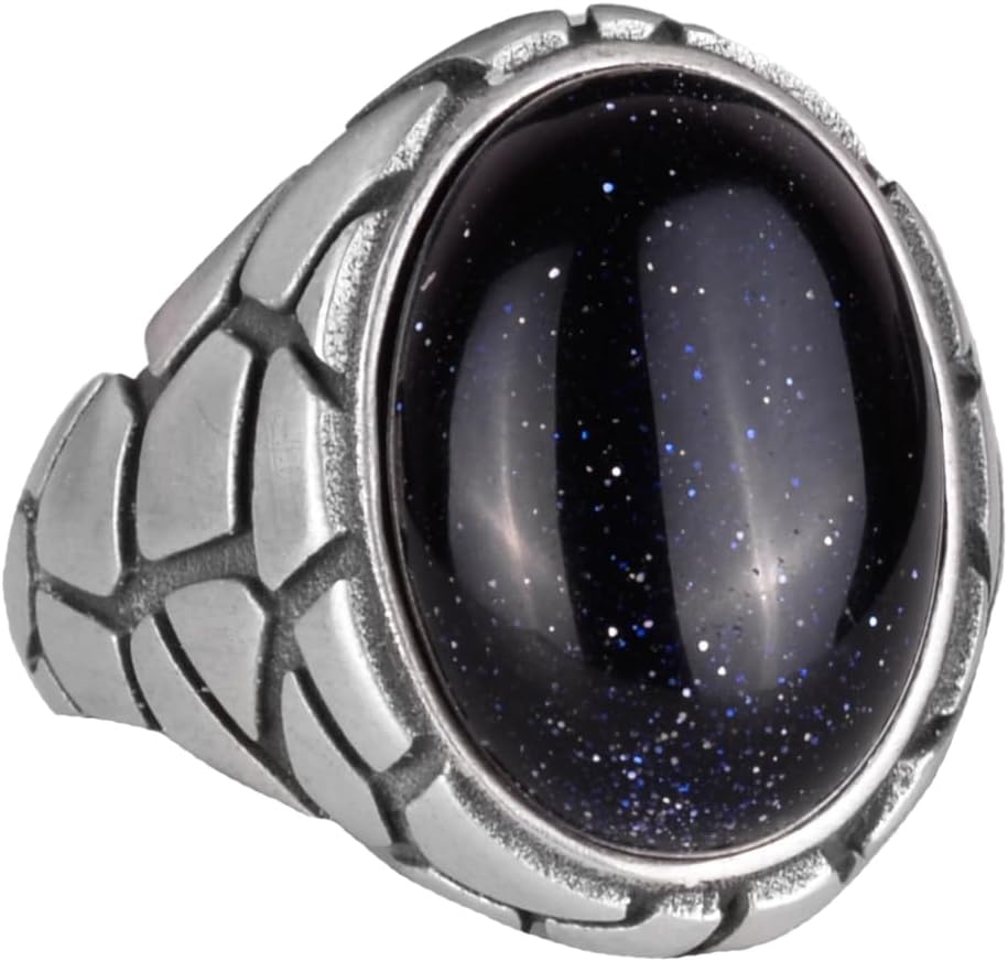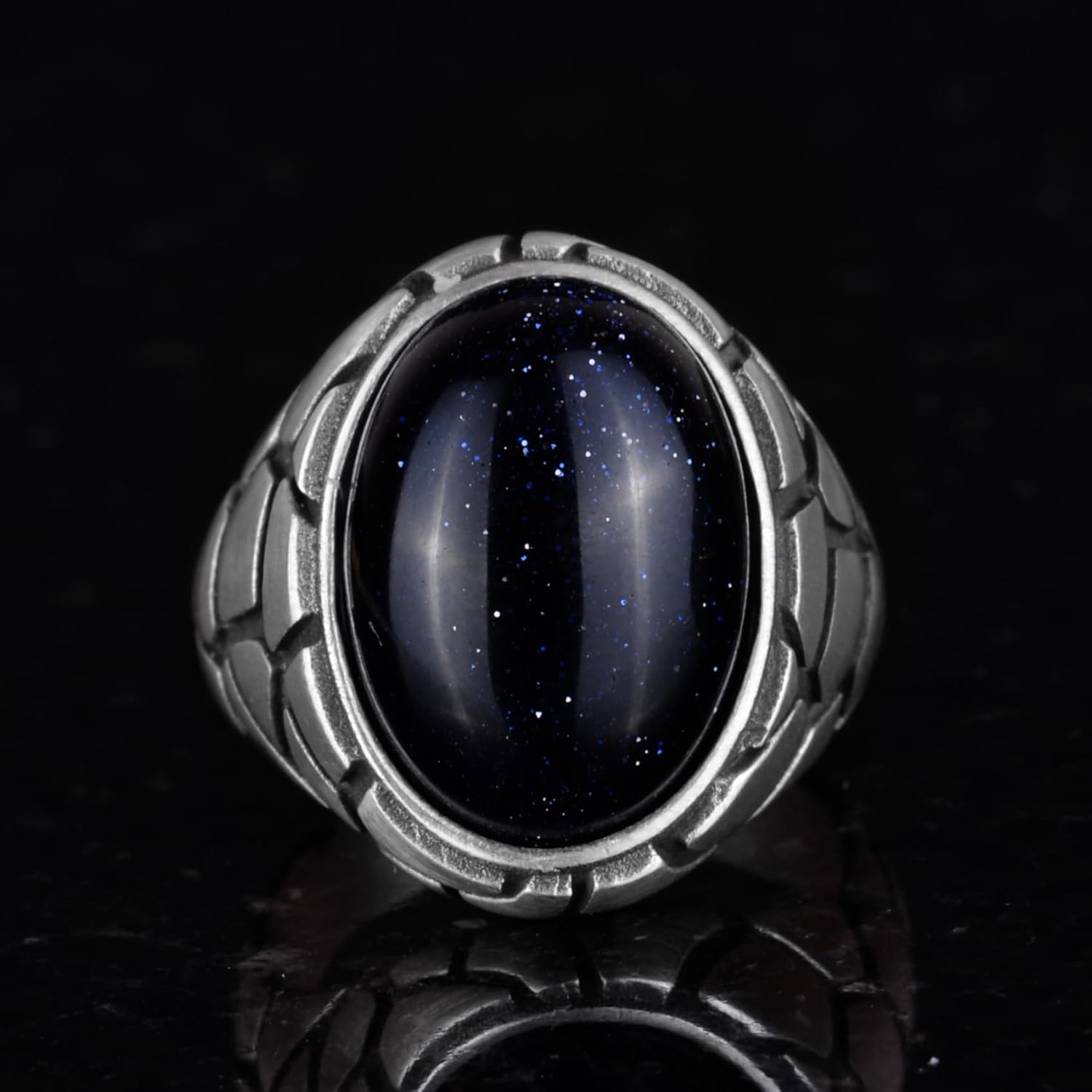 Erkekler için Lüks 925 Ayar Gümüş Üretilmiş Taş Yüzükler - Çeşitli Koleksiyon (Güneş Taşı Üretilmiş Taş)