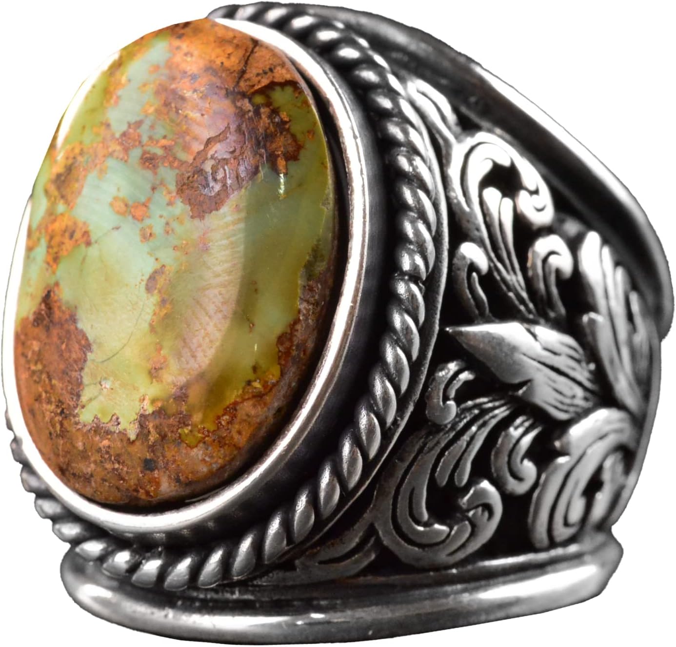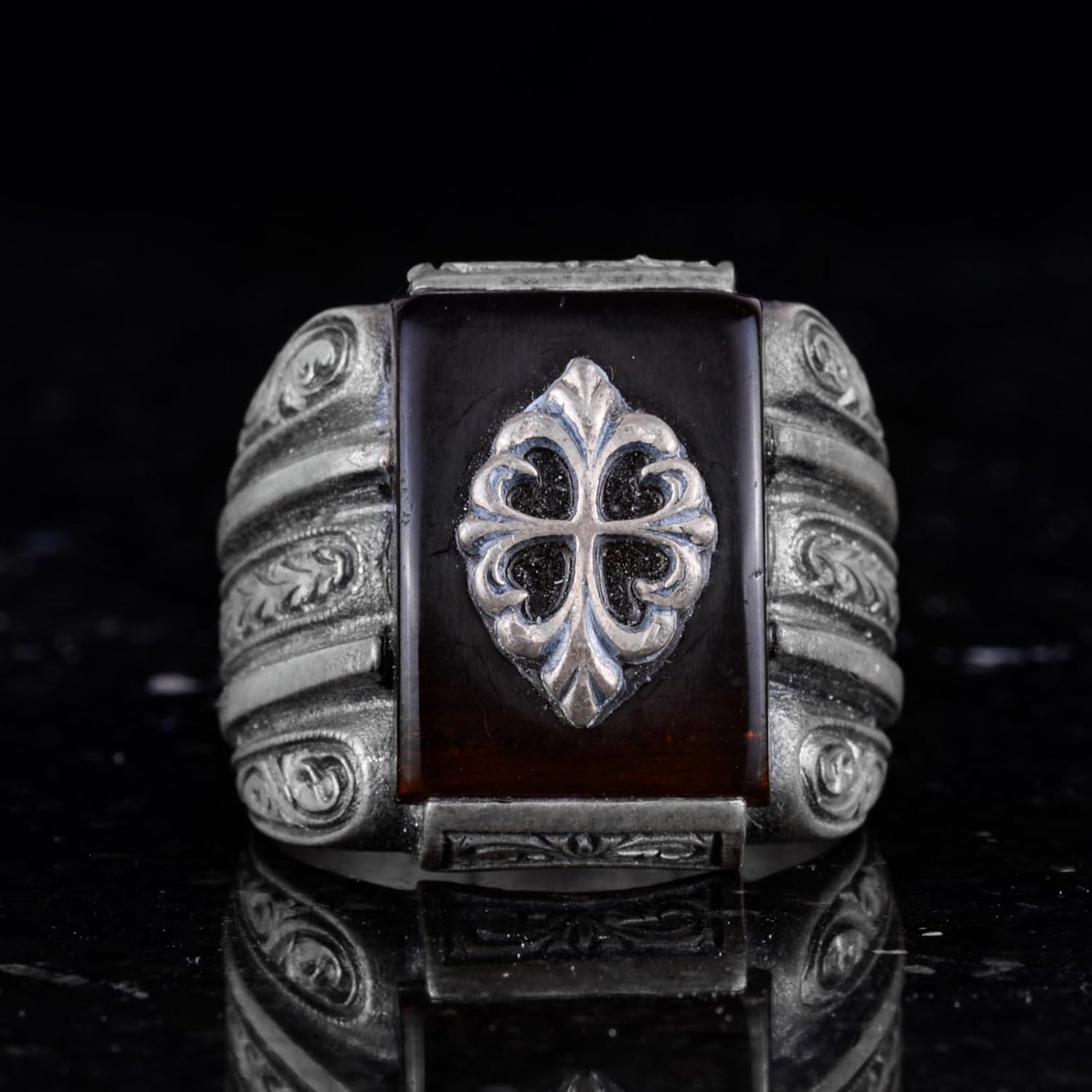 Erkekler için Sterling Gümüş Yüzük, Oluşturulmuş Agat, Süslemeli Vintage Tasarım, 925 Gümüş