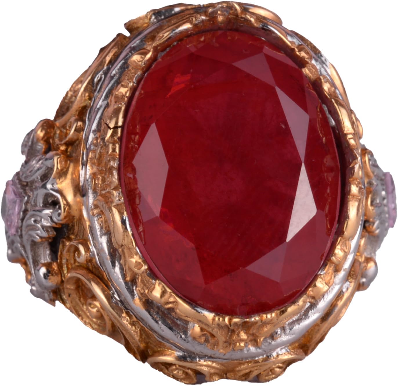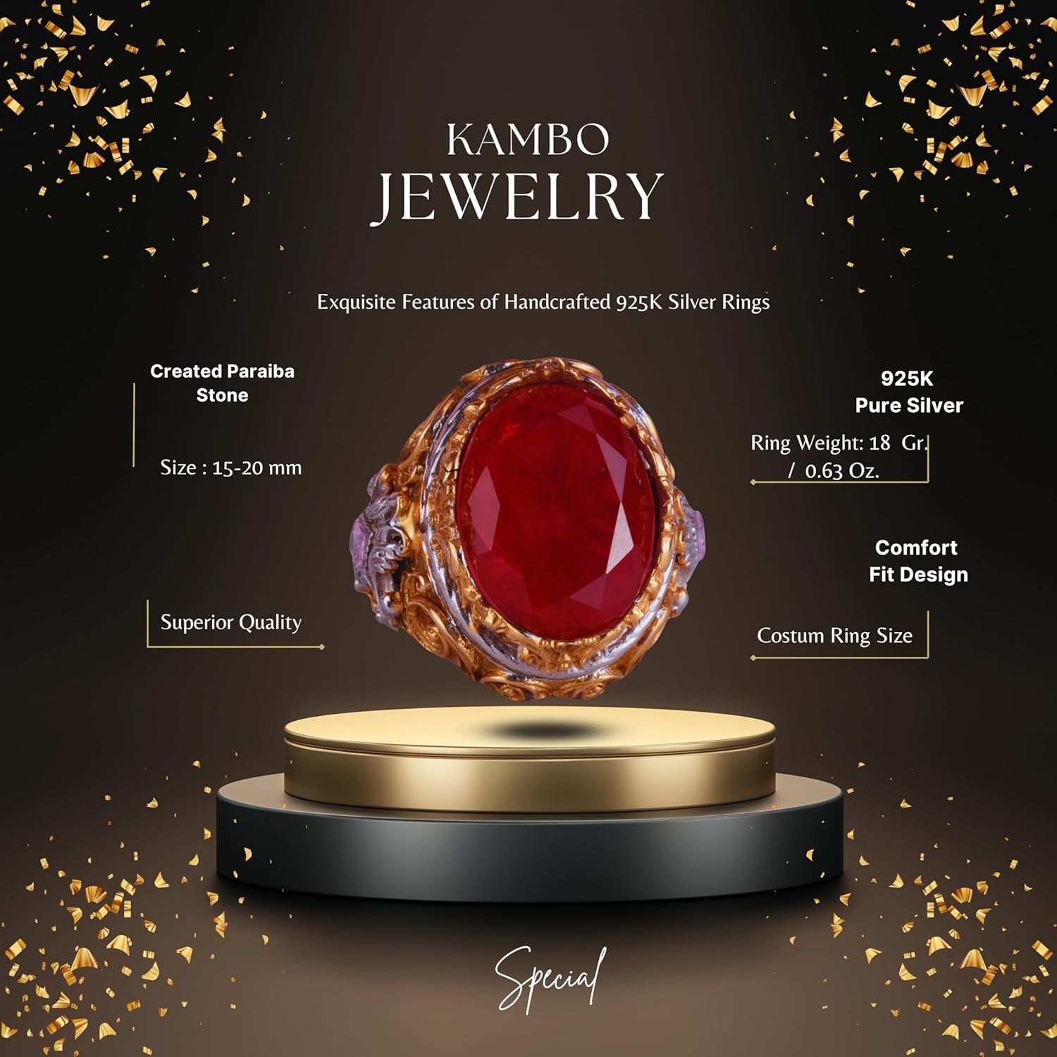 Erkekler için Yapay Taş Yüzük - Sultan Yüzük - El Yapımı 925 Ayar Gümüş Yüzük - Kırmızı Paraiba Yüzük